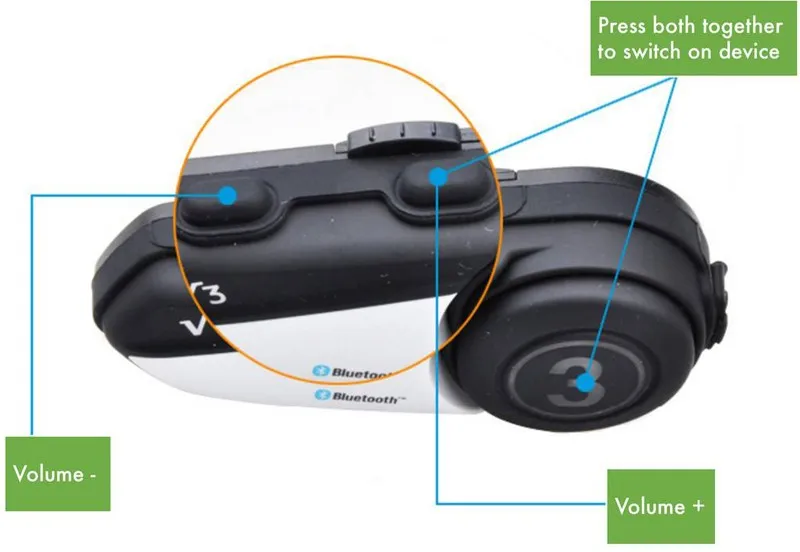 1, V3 can be connected to two Bluetooth devices (two mobile phones or a mobile phone + 1 Vimoto Bluetooth adapter), do not have the front and rear seats talkback function, the phone can be manually answered only , it is actually a basic version for riding.