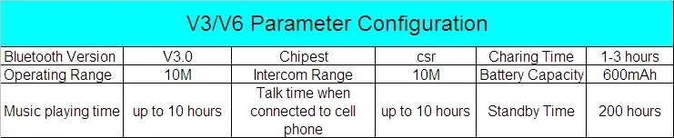 V6 comes with 600mah battery capacity, however, V8 is 850mah instead, V6,V8 can be connected to 3 Bluetooth devices (2 mobile phones + 1 Vimoto rear seat bluetooth headset or a mobile phone + 1 Vimoto Bluetooth adapter + 1 Rear seat bluetooth), two pieces V6,V8 have the front and rear seats talkback function, the phone can be automatically or manually answered, with a Voice Coexistence mode, Enable you to hear the sound from Vimoto bluetooth adapter and rear seat bluetooth headset at the same time, more powerful than V3