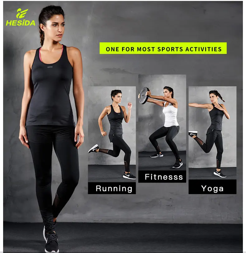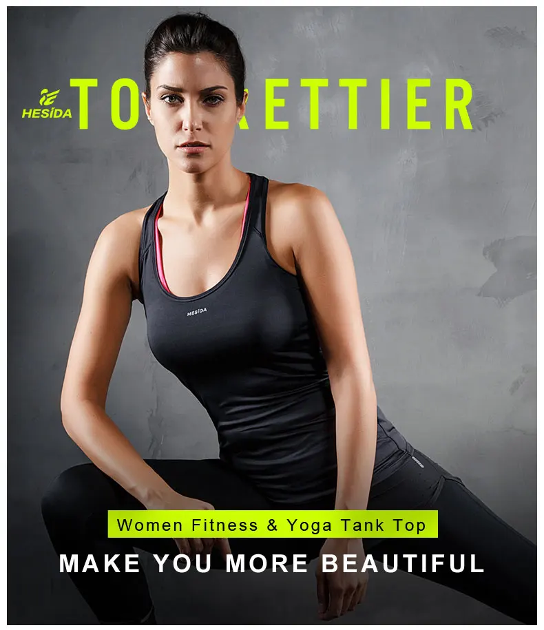 HESIDA Women Tank Quick Drying Breathable Fitness Summer Sleeveless Racerback Bodybuilding Yoga Sexy Workout White Vest Top
