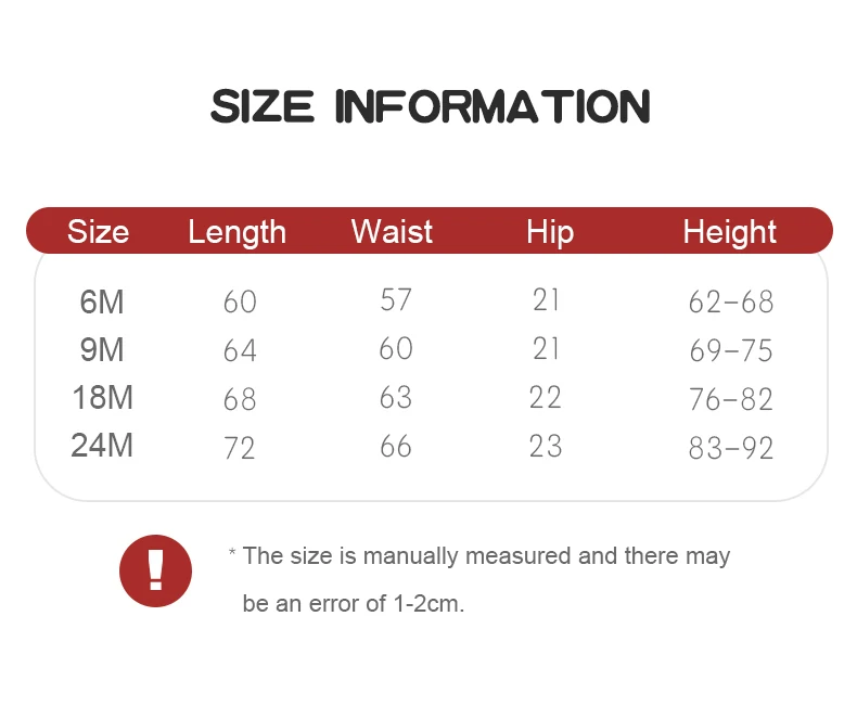 | Size | Length | Waist | Hip | Height |