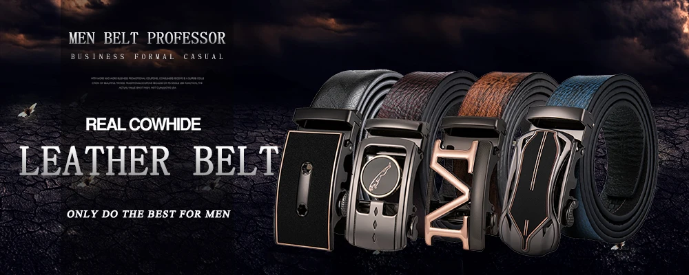 Hi-Tie Formal Designer Mens Business office Suit Belt Fashion Black Solid Leather Belts for Men Automatic Buckle Belts EA-2013