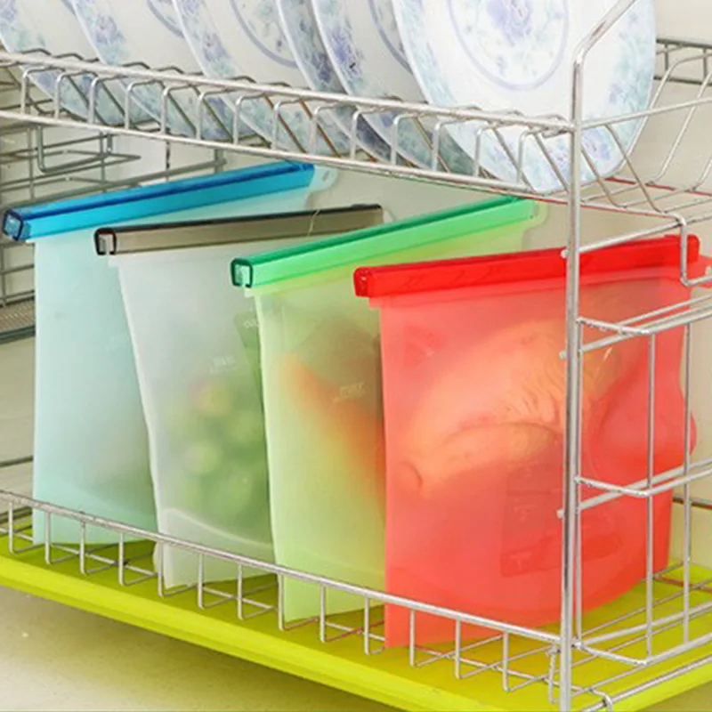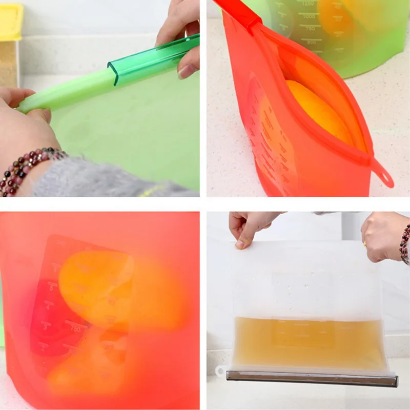 HIFUAR 1000ml Silicone Bag Food Storage Sealer milk Fruit Meat Reusable Vacuum Fridge Food Storage Containers Refrigerator Bag