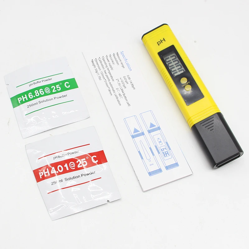 Auto Calibrated: Features in-built calibration with 2 buffer powders(included).Just press a button to finish the calibration. This pH meter is factory calibrated. Users can use it directly.
