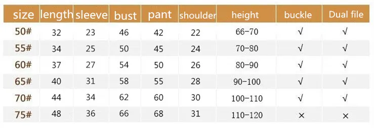 Size in age: 6M-5years old