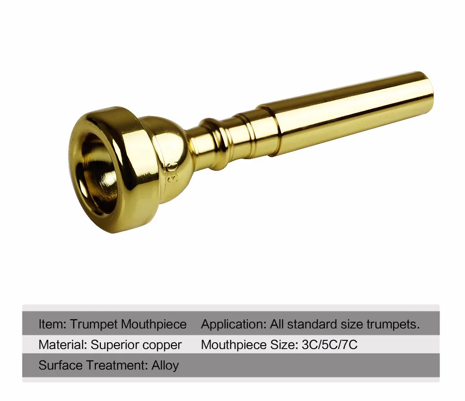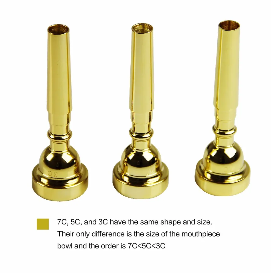 We have 3C / 5C / 7C size trombone mouthpiece darkens the sound, produces a rich mega tone. It is computer-aided design system and computer controlled lathe work together to produce the most precise mouthpieces. Suitable for trumpet professional enthusiasts and beginners.