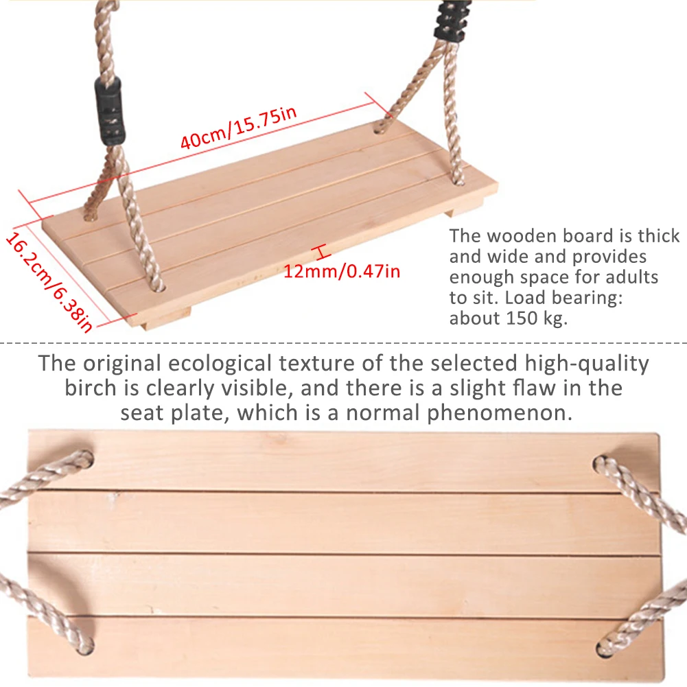 The wooden board is thick and wide and provides enough space for adults to sit. Load bearing: about 150 kg.