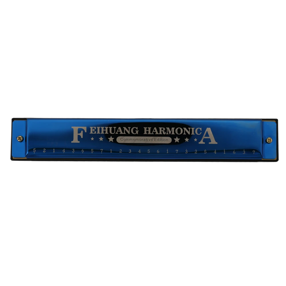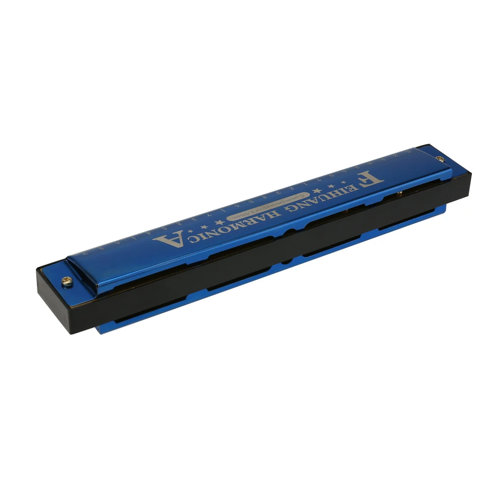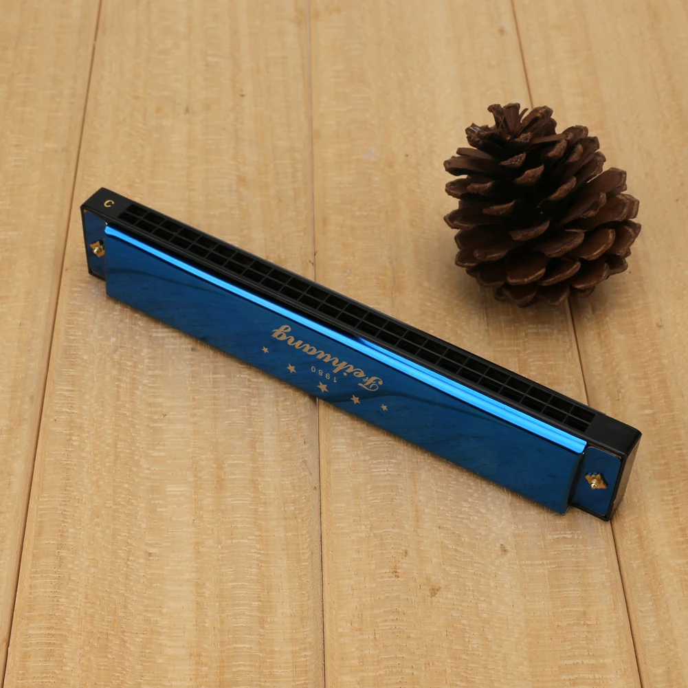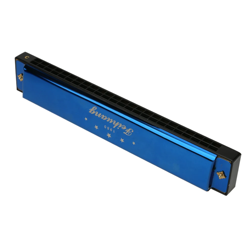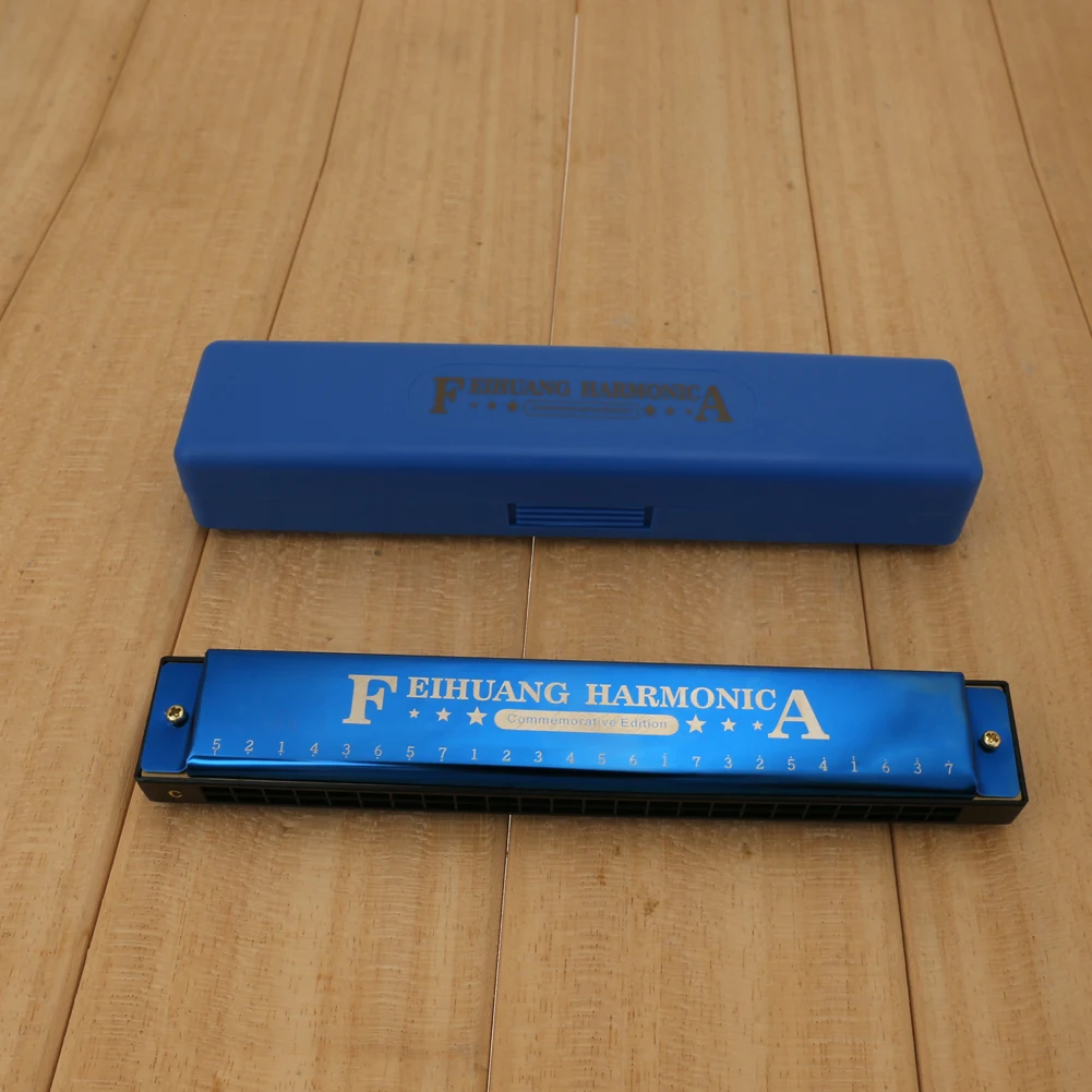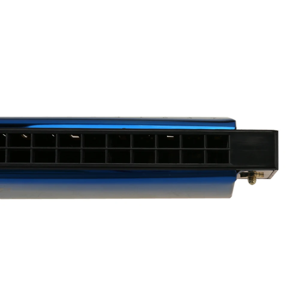 1.New and high quality 2.It really works, it let you playing music any time, anywhere 3.Beautiful and high quality tamber 4.Metal body and metal reeds 5.Protected by comfortable box 6.24 holes with 48 tones and key of C 7.Perfect for any beginner or harmonica lover Mouth Organ Harmonica Specifications: Style B: Blue Harmonica Mouth Organ Harmonica Specifications: