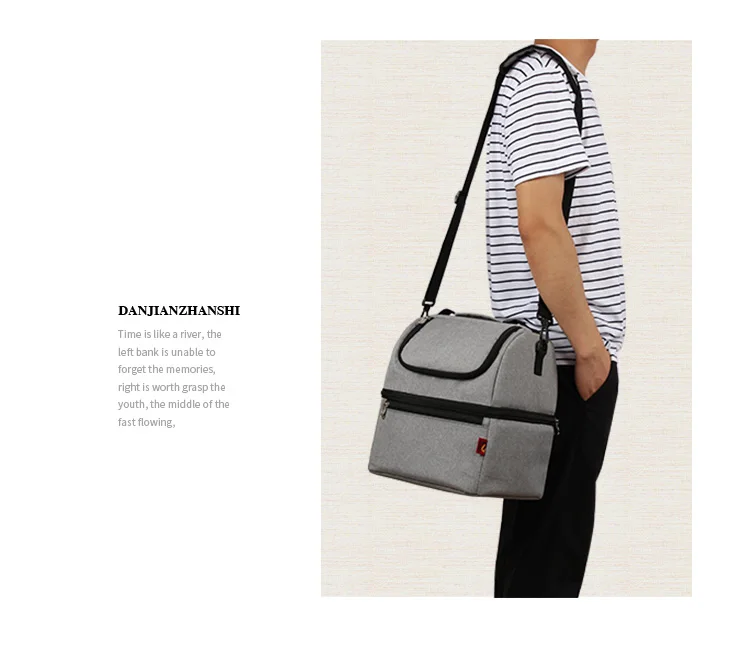 High quality double layers thermal picnic cooler bag insulated food drinks storage cool ice pack lunch box thermo shoulder bag