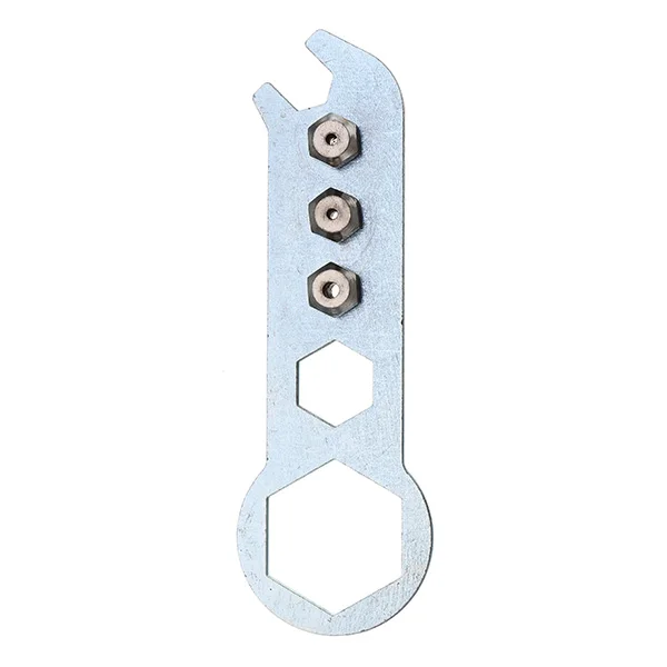 Using the wrench to install the right size nozzle.