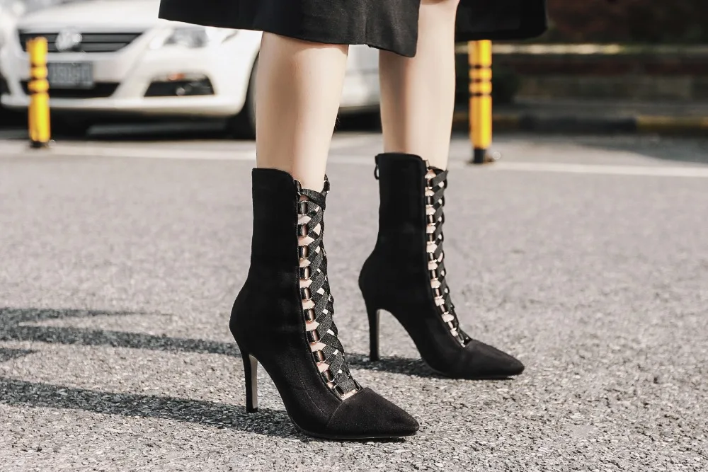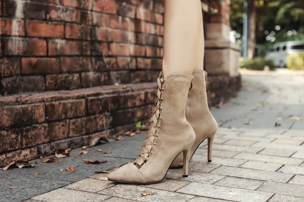 High Quality Gladiator High Heels Women Pumps Genova Stiletto Sandal Booties Pointed Toe Strappy Lace Up Pumps Shoes Woman Boots