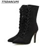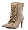 High Quality Gladiator High Heels Women Pumps Genova Stiletto Sandal Booties Pointed Toe Strappy Lace Up Pumps Shoes Woman Boots