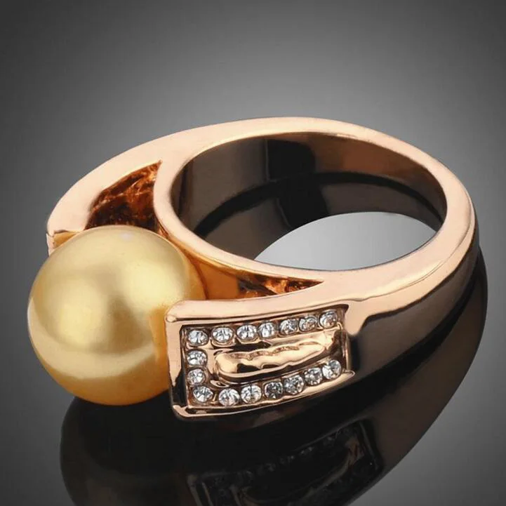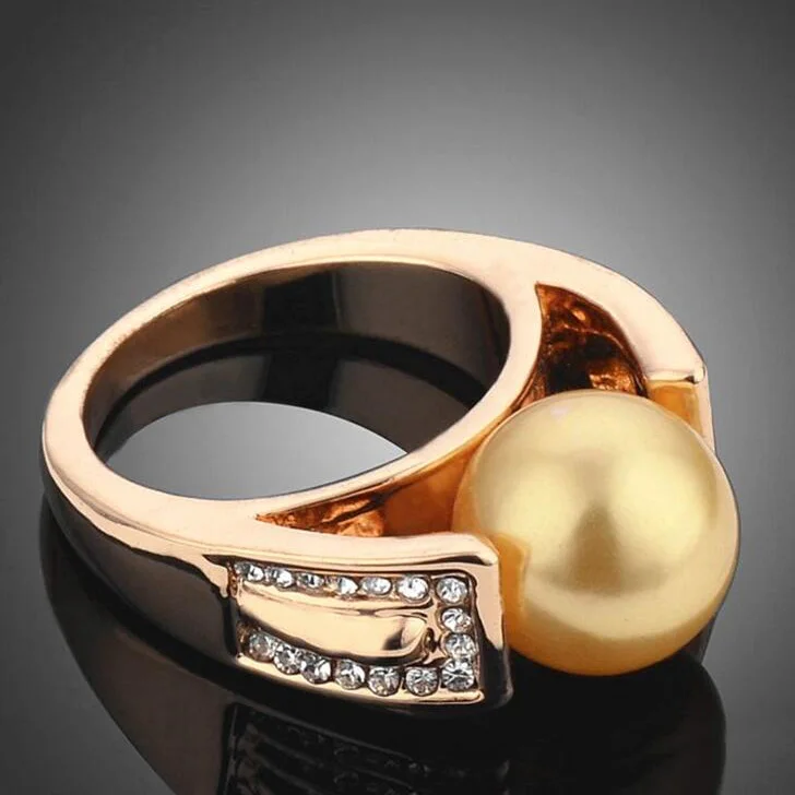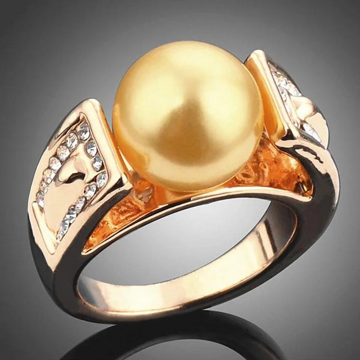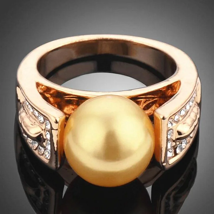 High Quality Gold Color Simulated Pearl Tiny Rhinestones Rings For Women Fashion Jewelry Anel Wedding Engagement Finger Ring