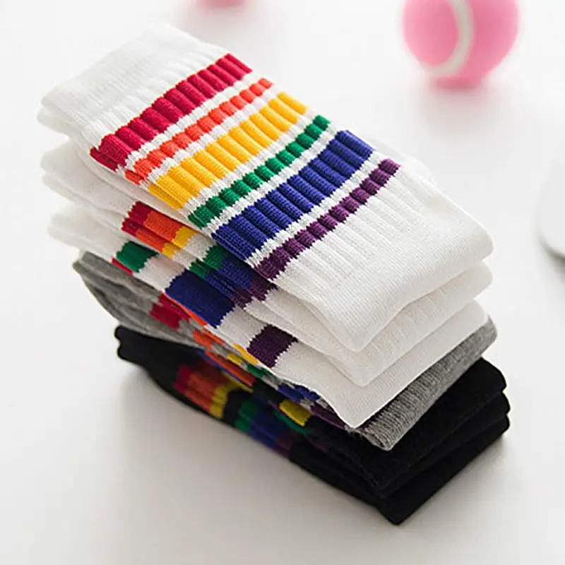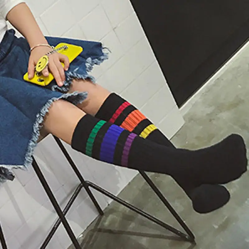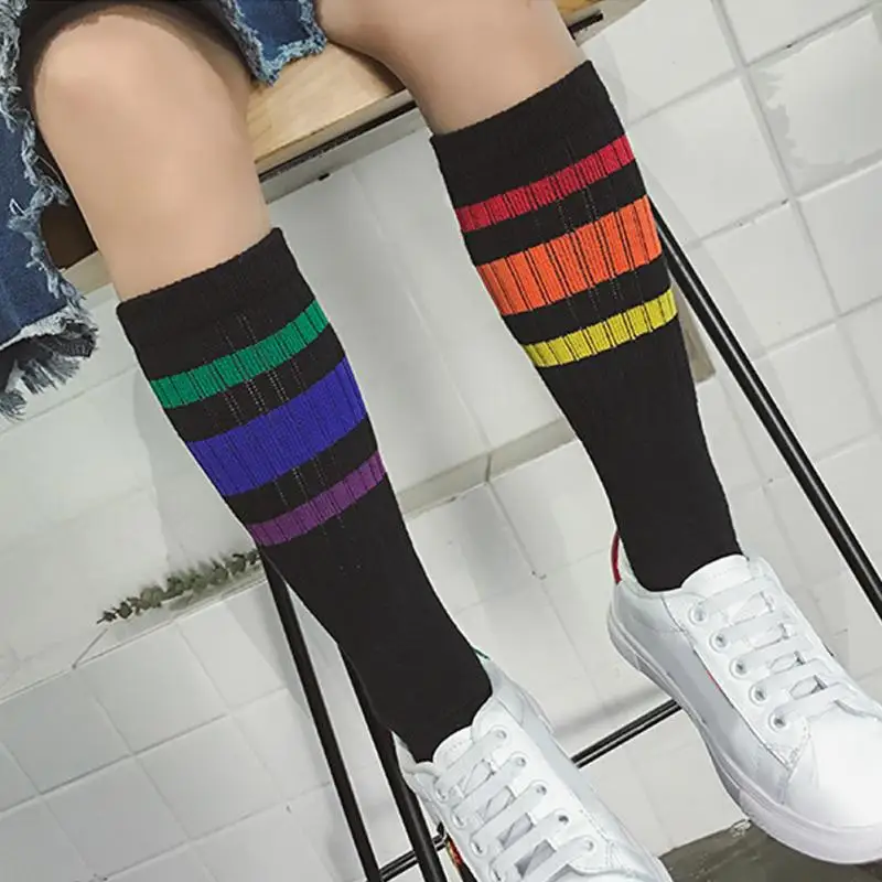 High Quality Leg Sock Cotton Autumn Winter Socks Women Full Cotton Rainbow Wind Heap Funny Hosiery Kawaii Japan