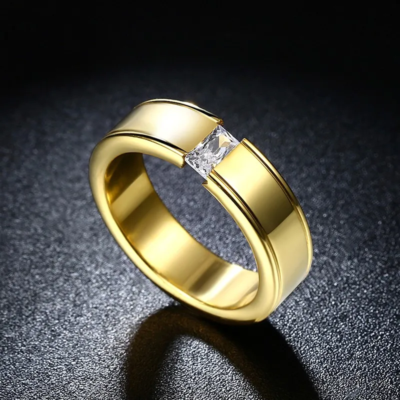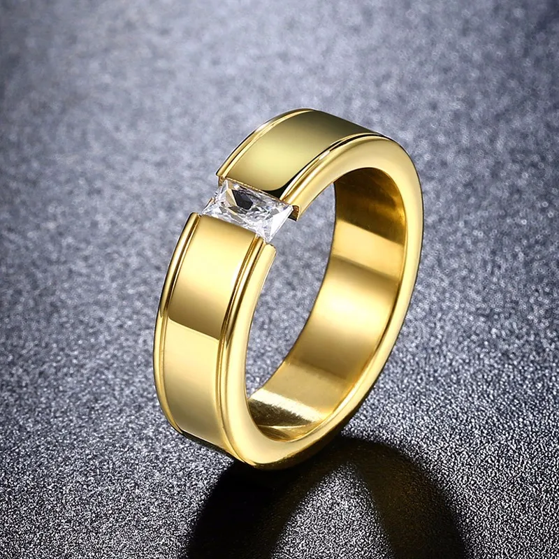 High Quality Men Women Wedding Band Titanium Steel Zircon Ring Bague Homme Wholesale Wiredrawing Fashion Stainless Steel Rings