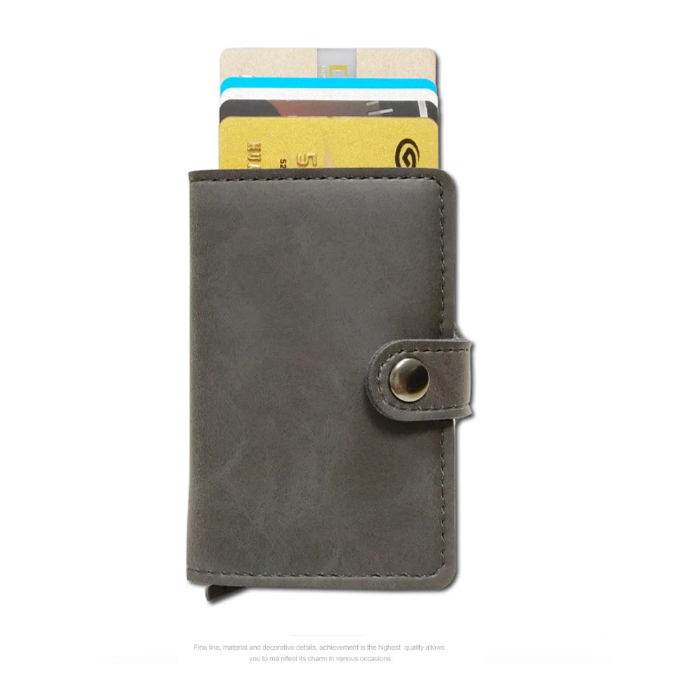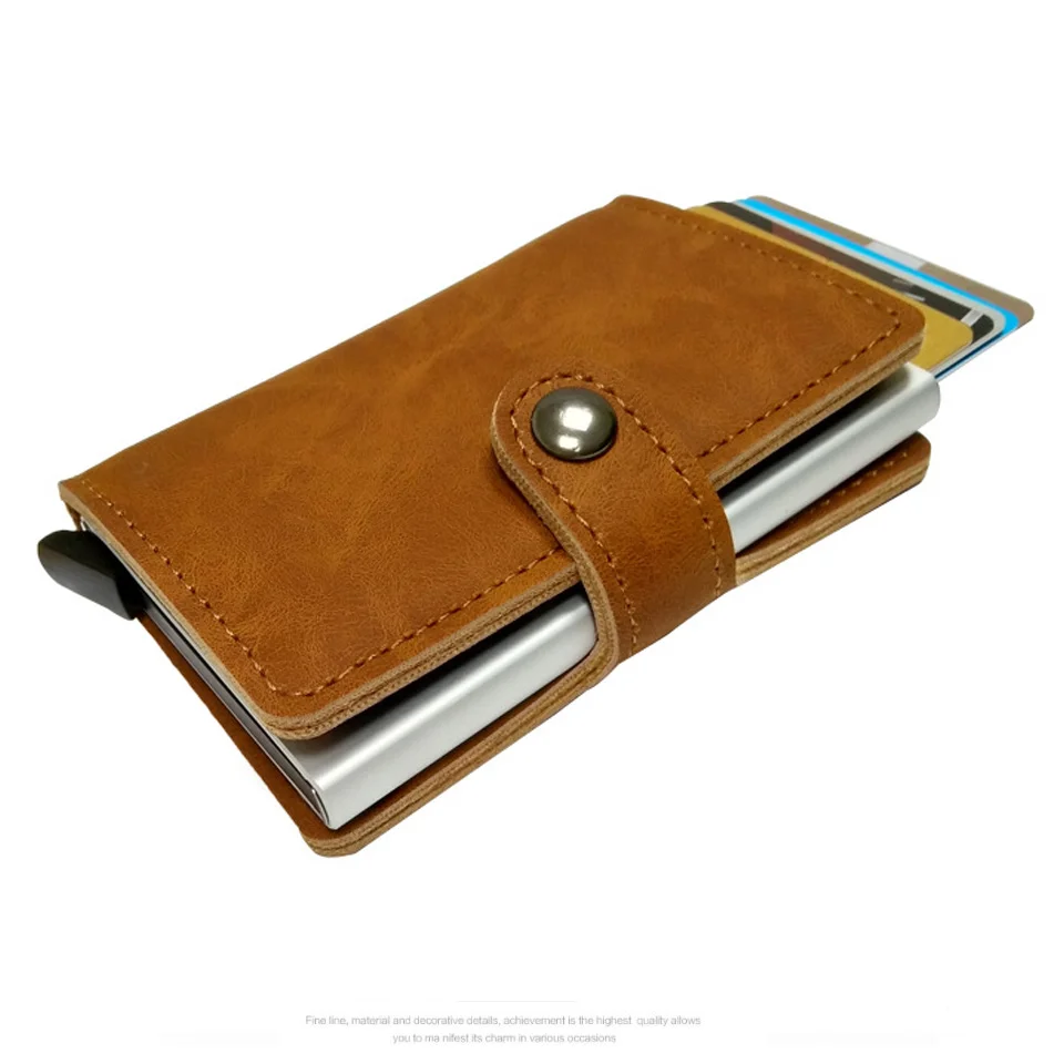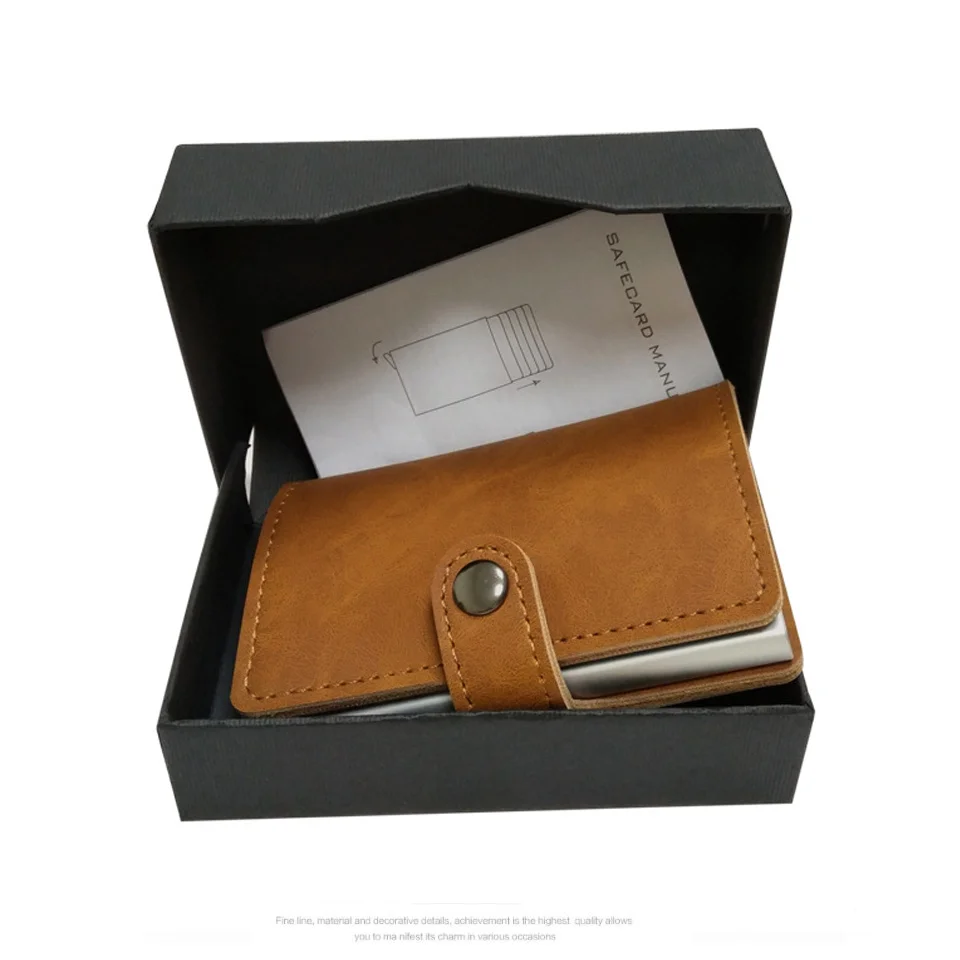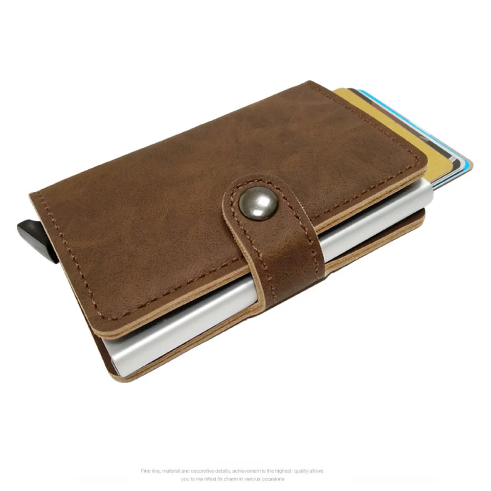 High Quality RFID Wallet Crazy Horse Leather Antitheft Cardprotector Aluminium Alloy Miniwallet Automatic Pop Up Card Case