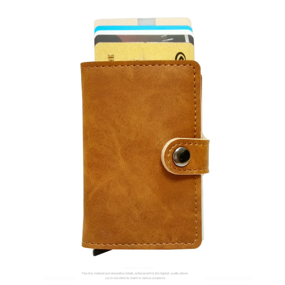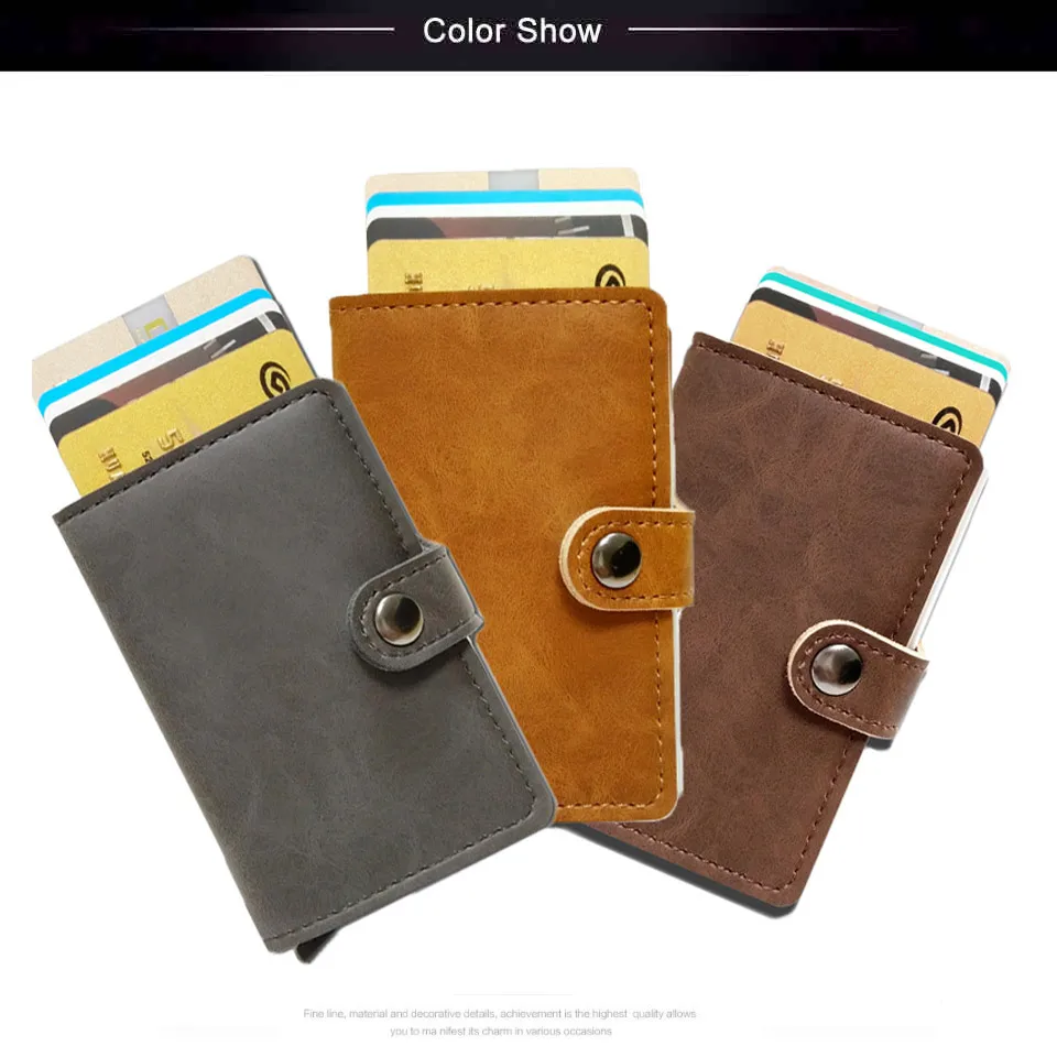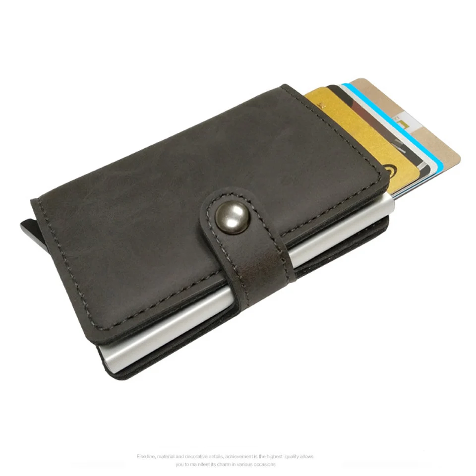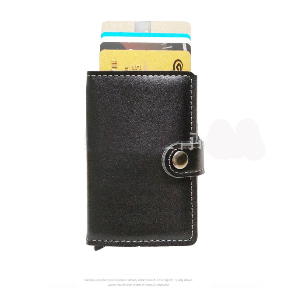 High Quality RFID Wallet Crazy Horse Leather Antitheft Cardprotector Aluminium Alloy Miniwallet Automatic Pop Up Card Case