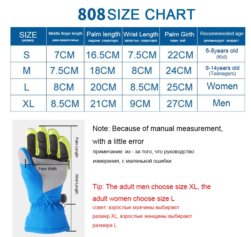 Note: Please notice the size chart is Gloves Size, not hands, and the gloves size information is just for reference only, please check the above detailed