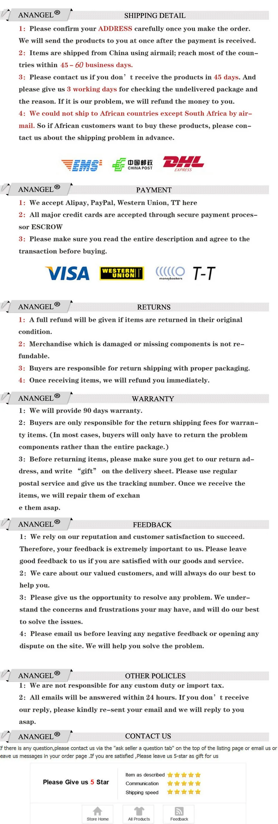 • If you did not receive the product within the guaranteed time( 45 days not including 2-5 day processing) you can request a refund or a reshipment.