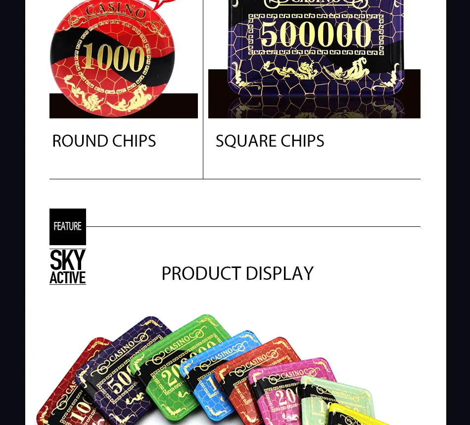 High-quality special square type large square chip chips currency Hold’em with custom mahjong ABS chips