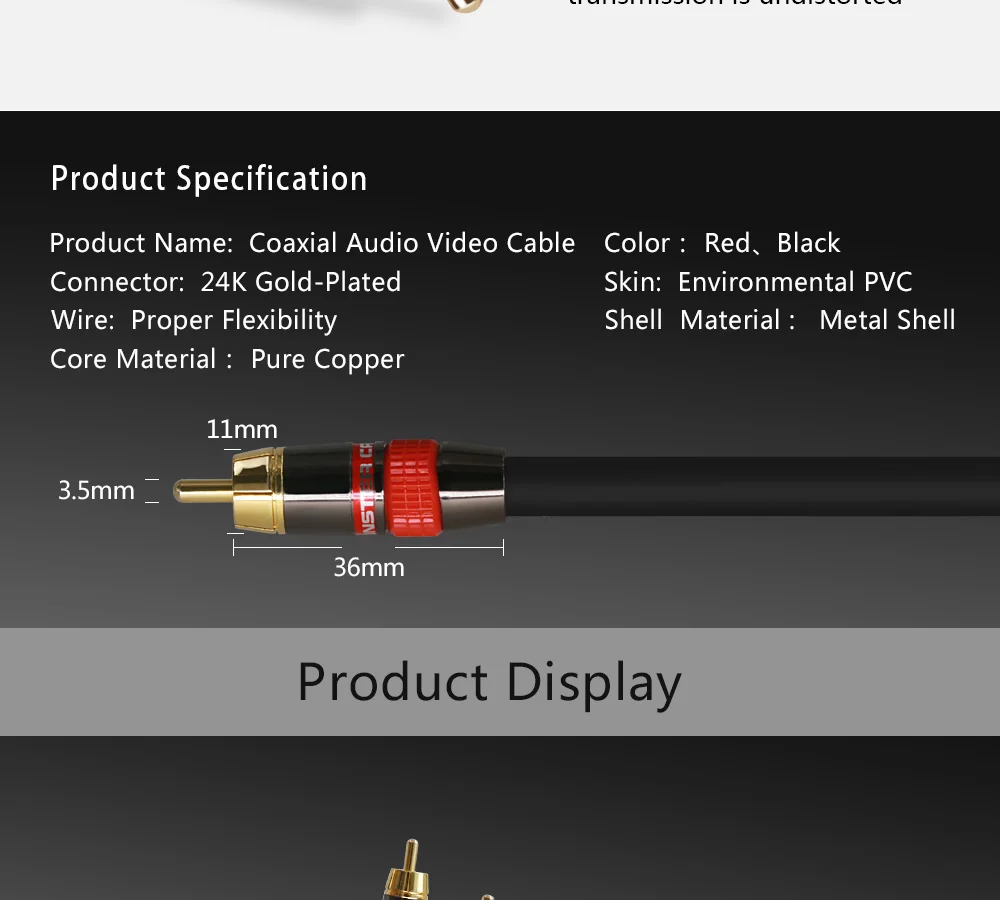 High Quality Stereo Digital Coaxial Audio Video RCA Cable speaker cable Hifi Subwoofer cable AV TV cables