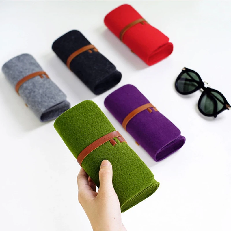 -Solid color wool bundled glasses case.