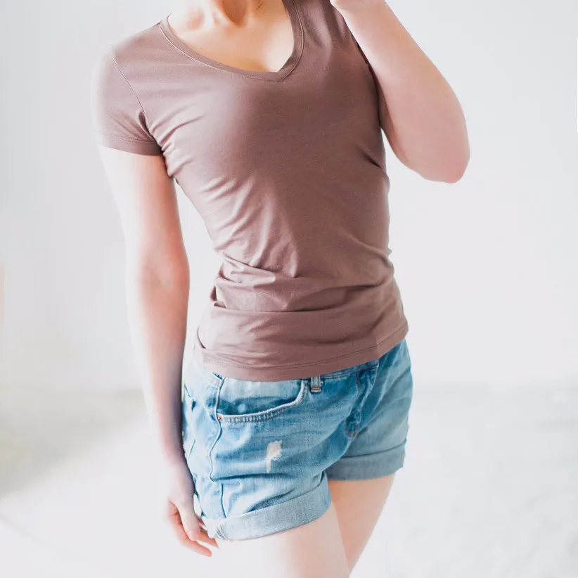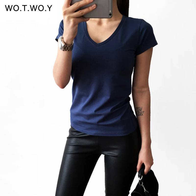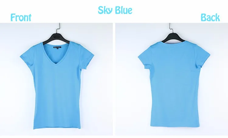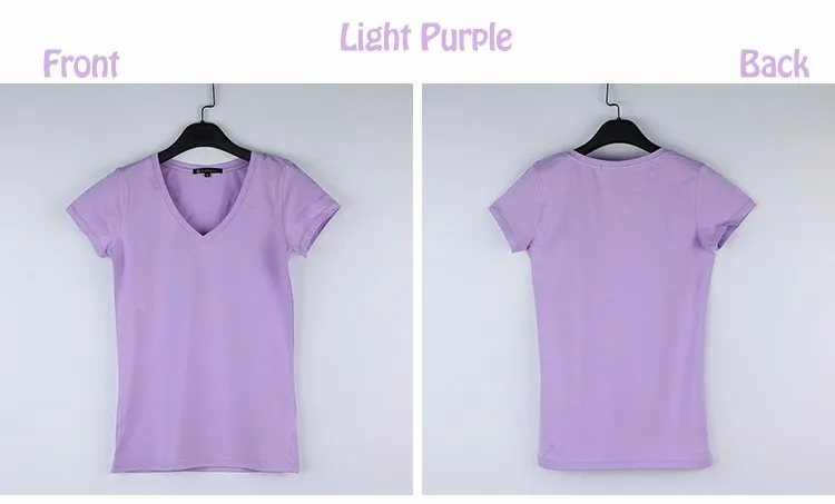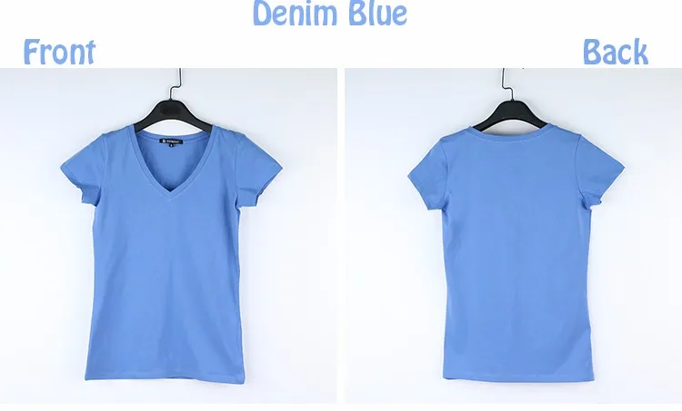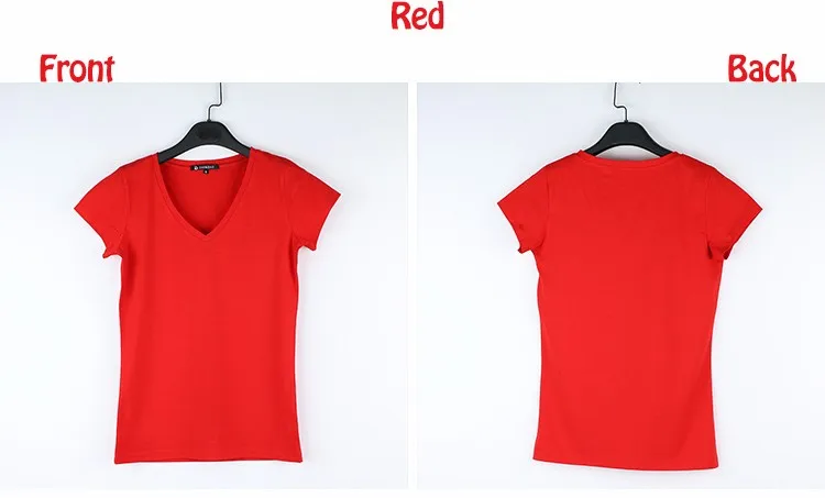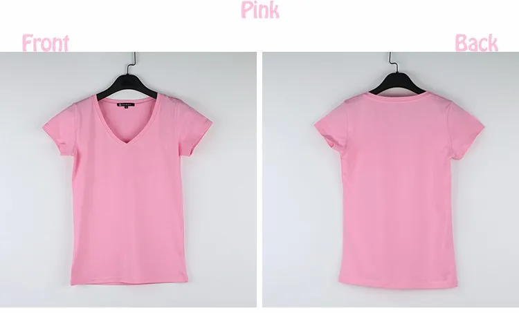 High Quality V-Neck 15 Candy Color Cotton Basic T-shirt Women Plain Simple T Shirt For Women Short Sleeve Female Tops 077