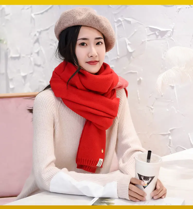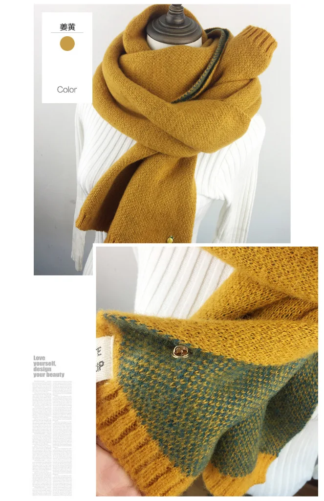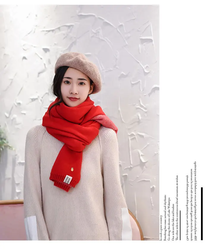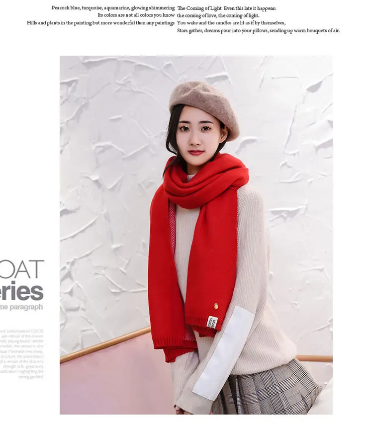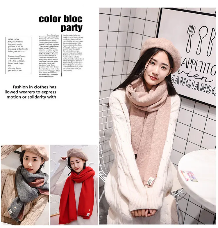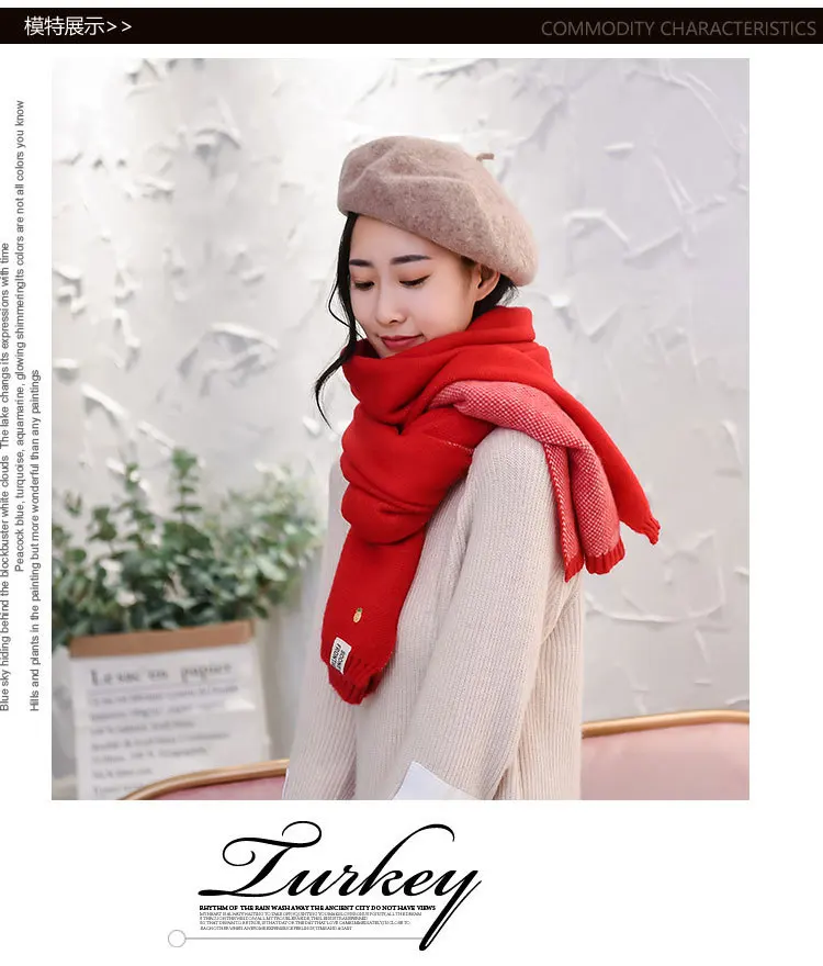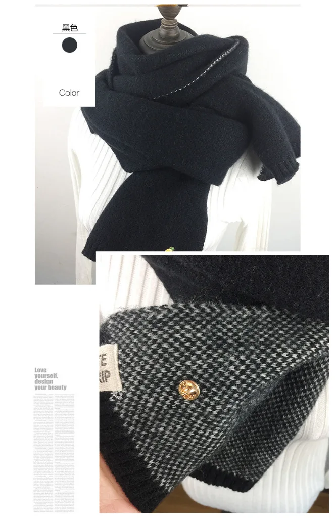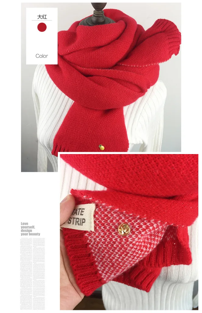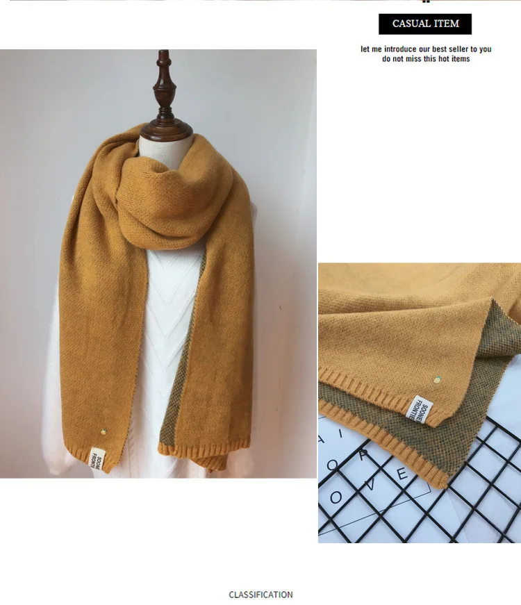 High Quality women winter scarf women yellow red scarf for ladies thick warm knitted winter scarf women knitted Black Red Blue