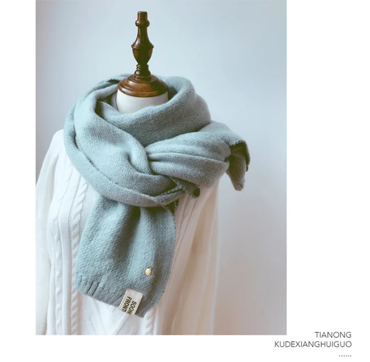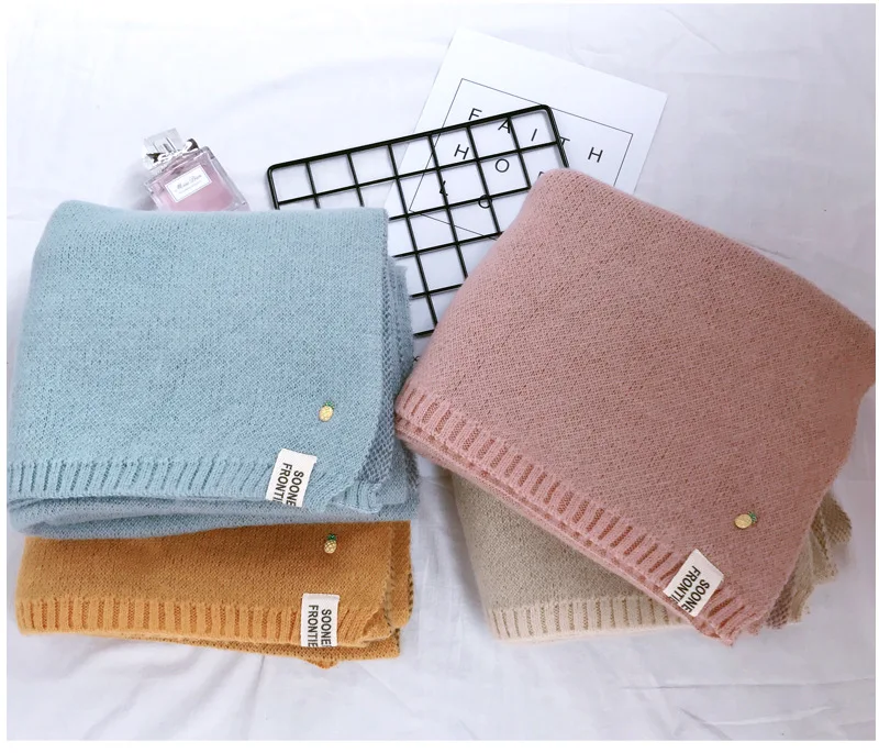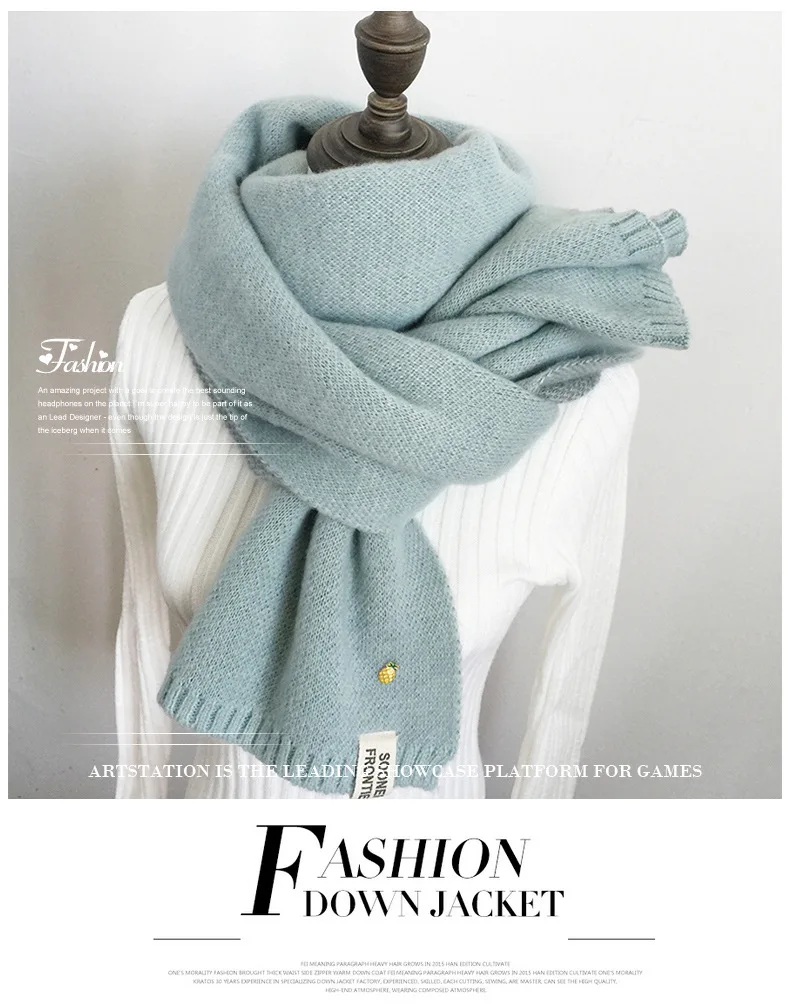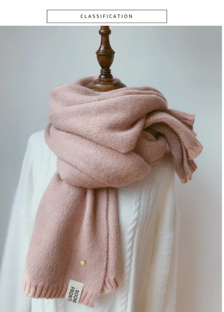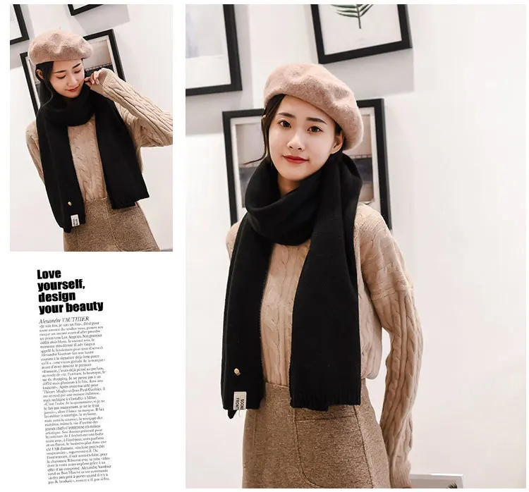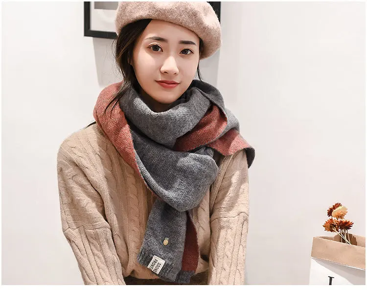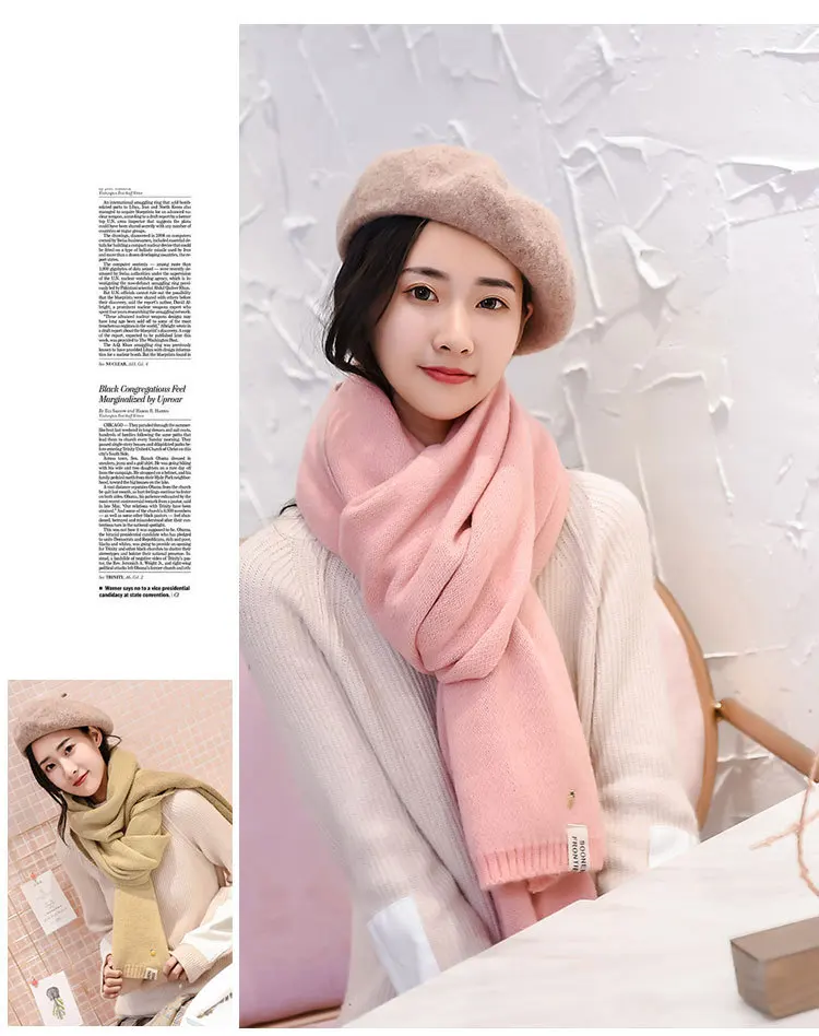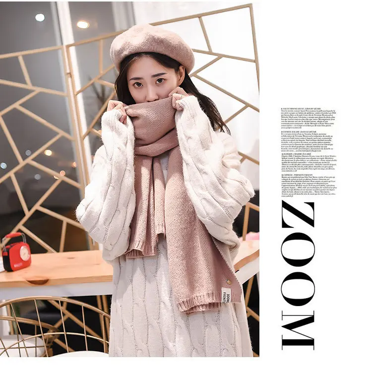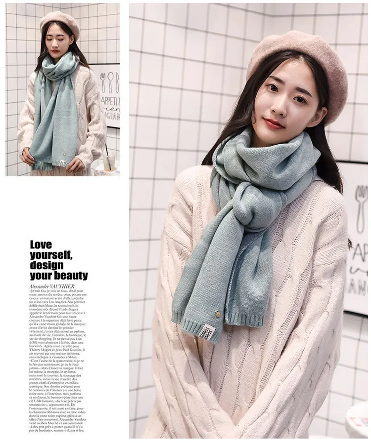 High Quality women winter scarf women yellow red scarf for ladies thick warm knitted winter scarf women knitted Black Red Blue