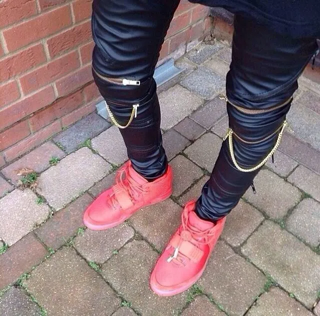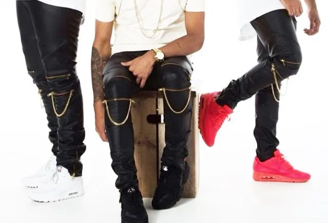 High Quantity PU Faux Leather Men Skinny Justin Bieber Clothes Slim Fit Hip Hop Hiphop Pants Zipper Swag Biker Jogger Kanye West