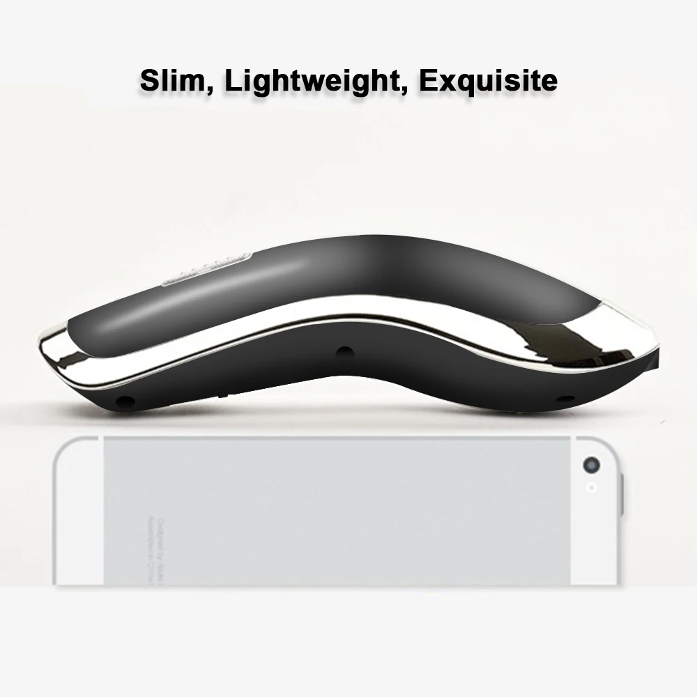 It is a fashionable and high-class office equipment. Original appearance design, stylish exterior, mini size, ergonomic shape, exquisite and fine workmanship, make it stand out. 2.4G wireless connection, keeps your desktop clean and tidy, and meanwhile promises high efficiency. Besides, it can read not only all kinds of 1D barcodes on paper but also barcodes on the mobile phone and computer screen. And also it can read 2D QR codes. Bright red beam makes it read thin barcodes accurately and correctly. It is especially suitable for the clothing shop, boutique, restaurants, etc.