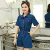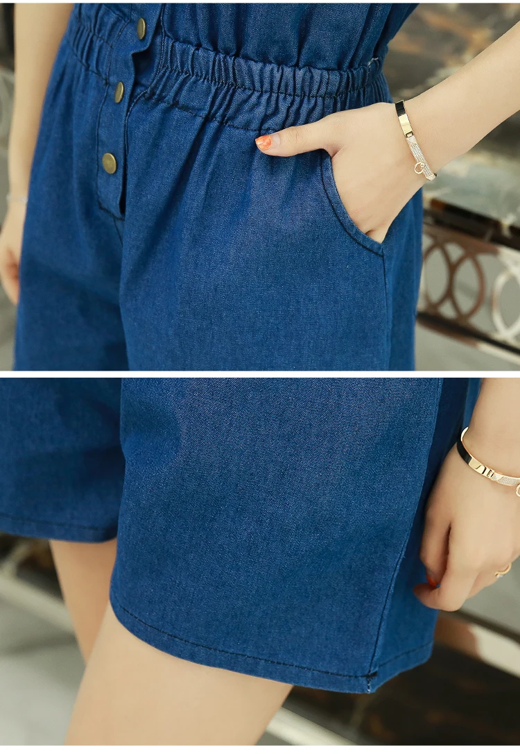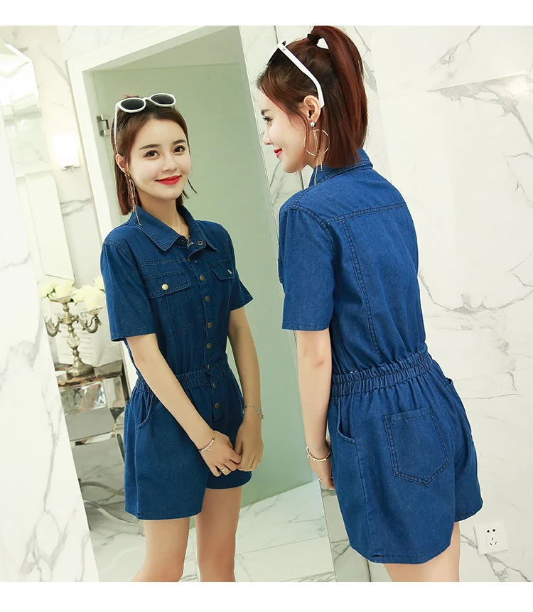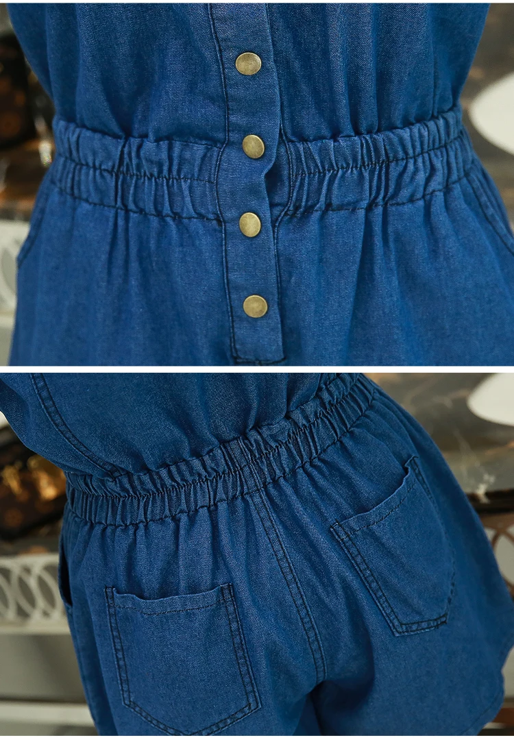 High Street 2018 Denim Jumpsuit Women Jeans Playsuit Loose Turn-down Collar Elastic Waist Vintage Rompers Overall macacao S85596