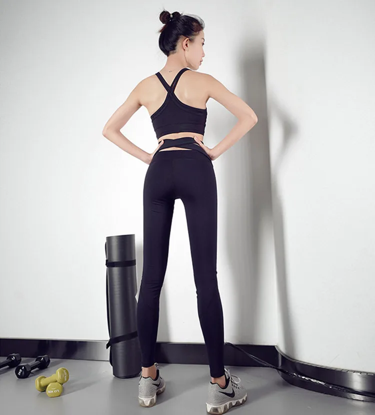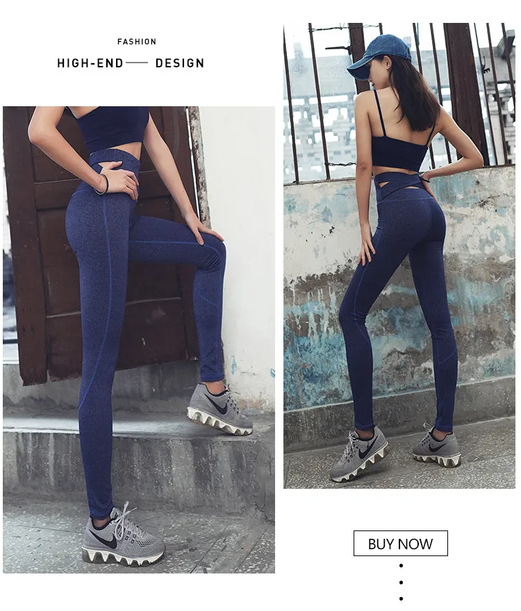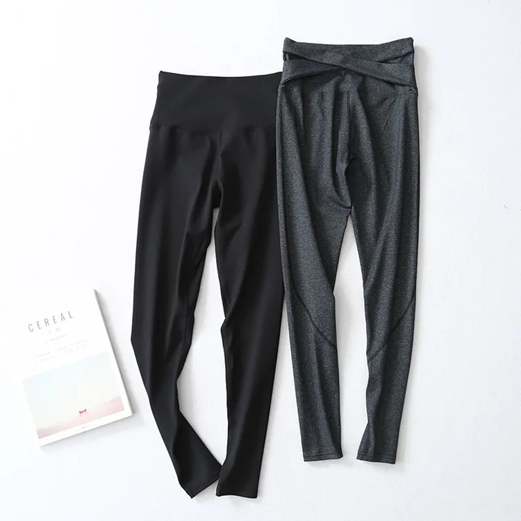 High Waist overlapping Strap Wide Waisted Yoga Pants for Women Fitness Running Tights Gymnastics Sport Cross Back Yoga Leggings