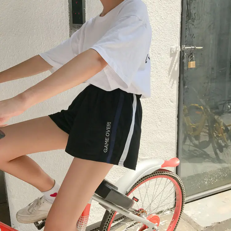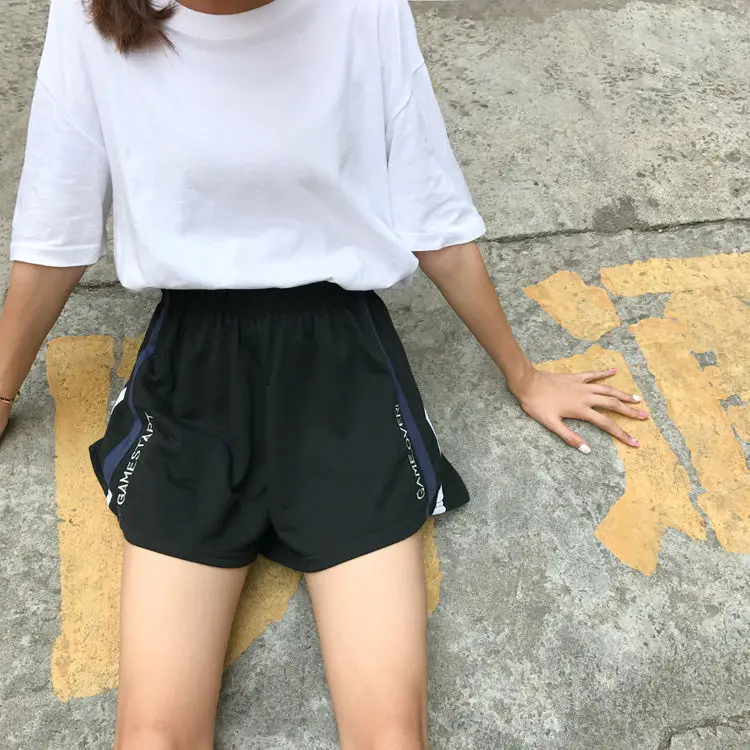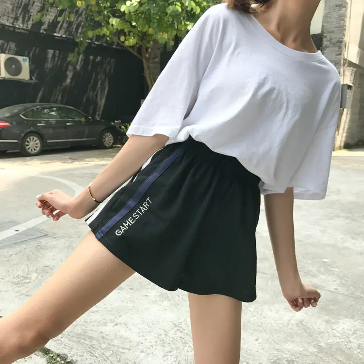High Waist Women Embroidery Shorts GRAM STAR GRAM OVER Casual Summer Elastic Waist Wide Leg Short Workout Striped Short Femme