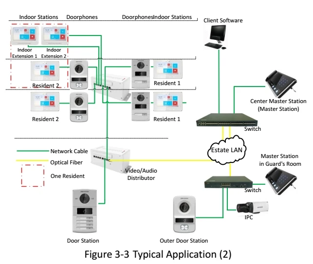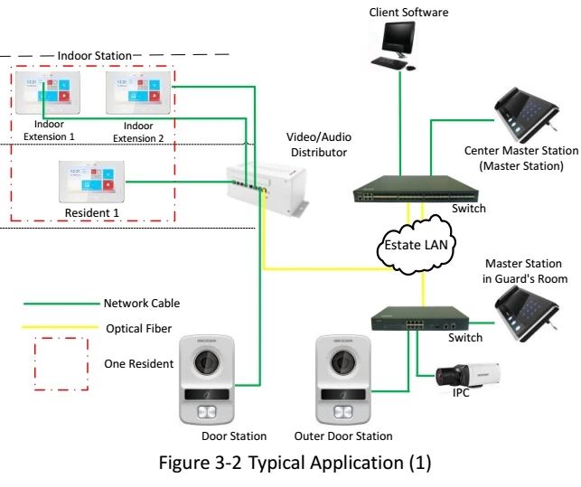 Support a door machine more than indoor machine or many sets of the door machine many sets of indoor machine; The door machine from indoor machine can be used alone, but only a credit card to open the door, when simple entrance guard controller is used, as well as access to the LAN Hik in video recorder,;