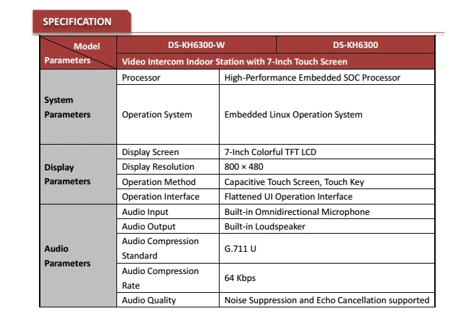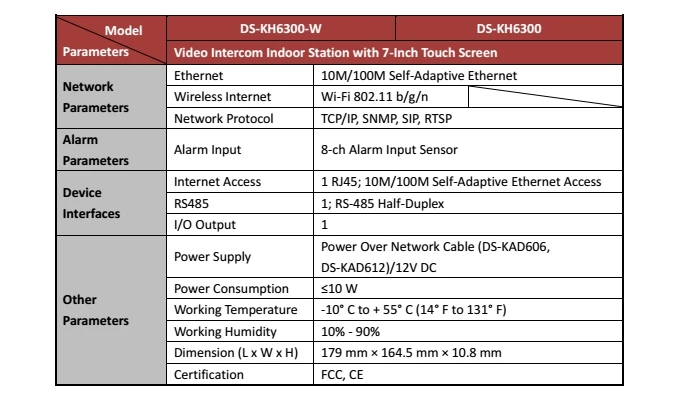 Hik Video Access Control DS-KH6300-W (DS-KH6300-A) Indoor Video Touchscreen 7-inch Monitor, wired doorbell