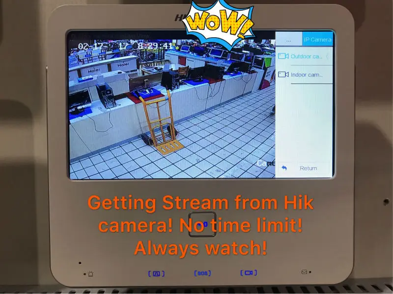 The indoor monitor can take a sub video stream from HIKVISION camera,without time limit!(The base version does not have this feature.)