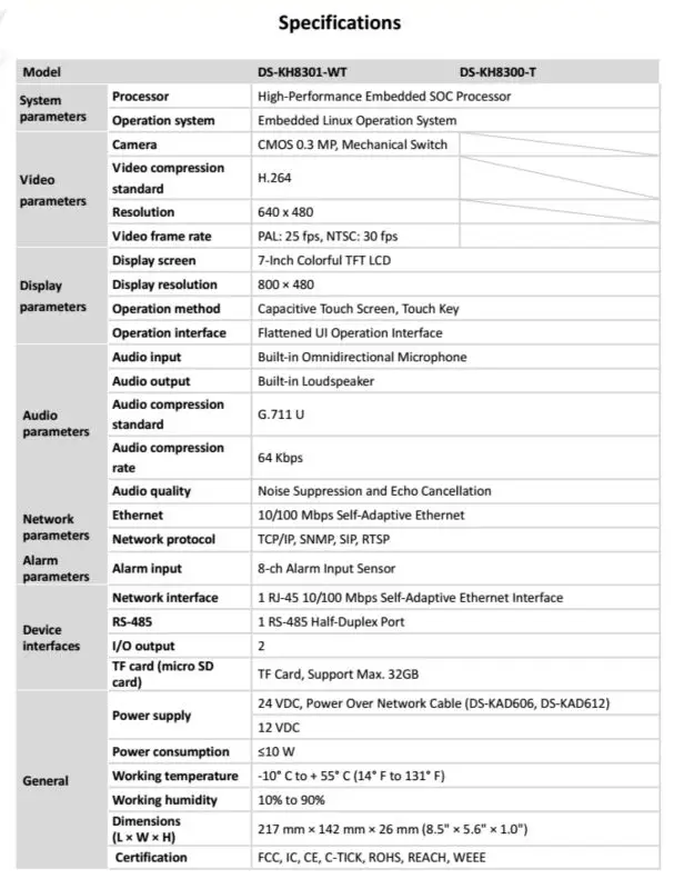 DS-KH8301-A Integrated with 0.3 MP camera, many sets of indoor machine can video calls