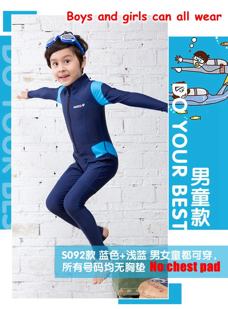 Hisea children’s Rash Guards fabric Kids surf Wetsuits Snorkeling warmness long Sleeve Swimming Diving Suit Jumpsuit Swimwear
