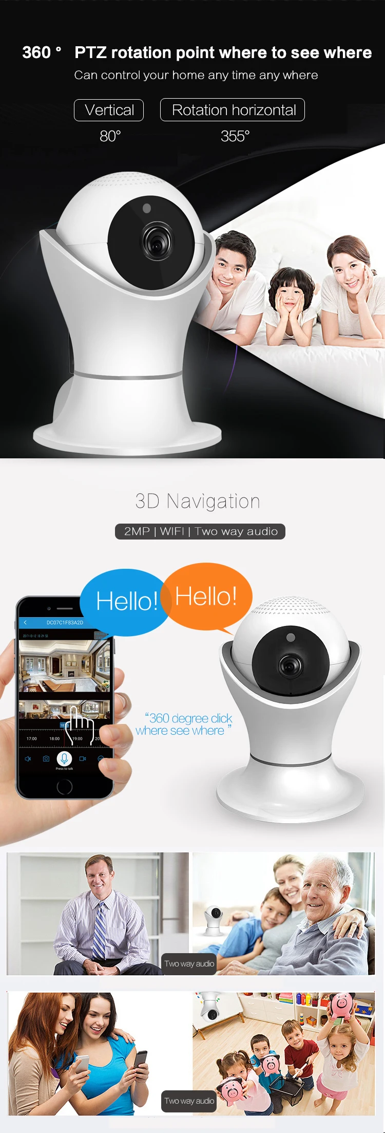 HJT Audio H.264 1080P Full-HD Wireless Wifi PTZ IP Camera CCTV Cam 2.0MP Baby Care Security fish eye Wide Angles SD Storage