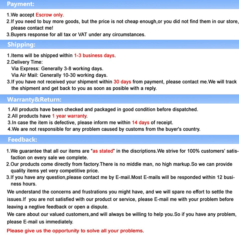 • If you did not receive the product within the guaranteed time( 45 days not including 2-5 day processing) you can request a refund or a reshipment.