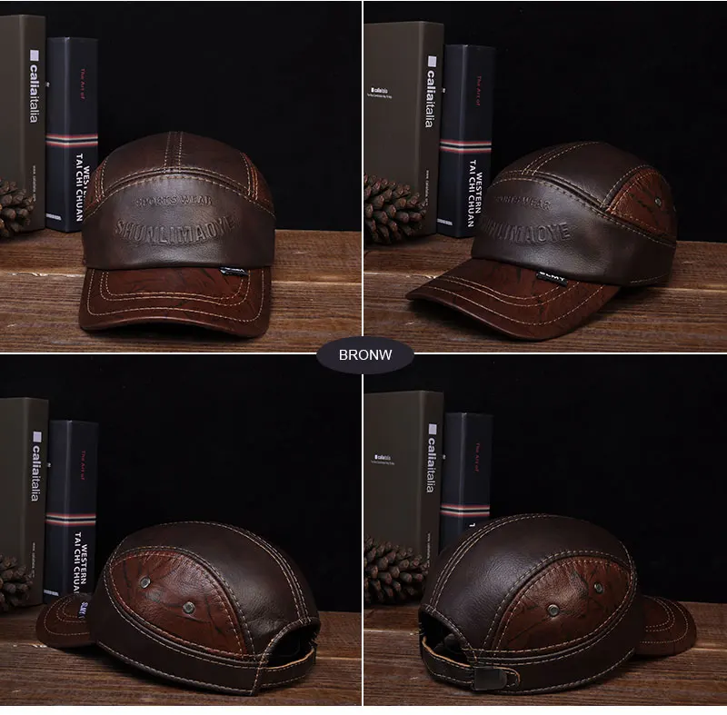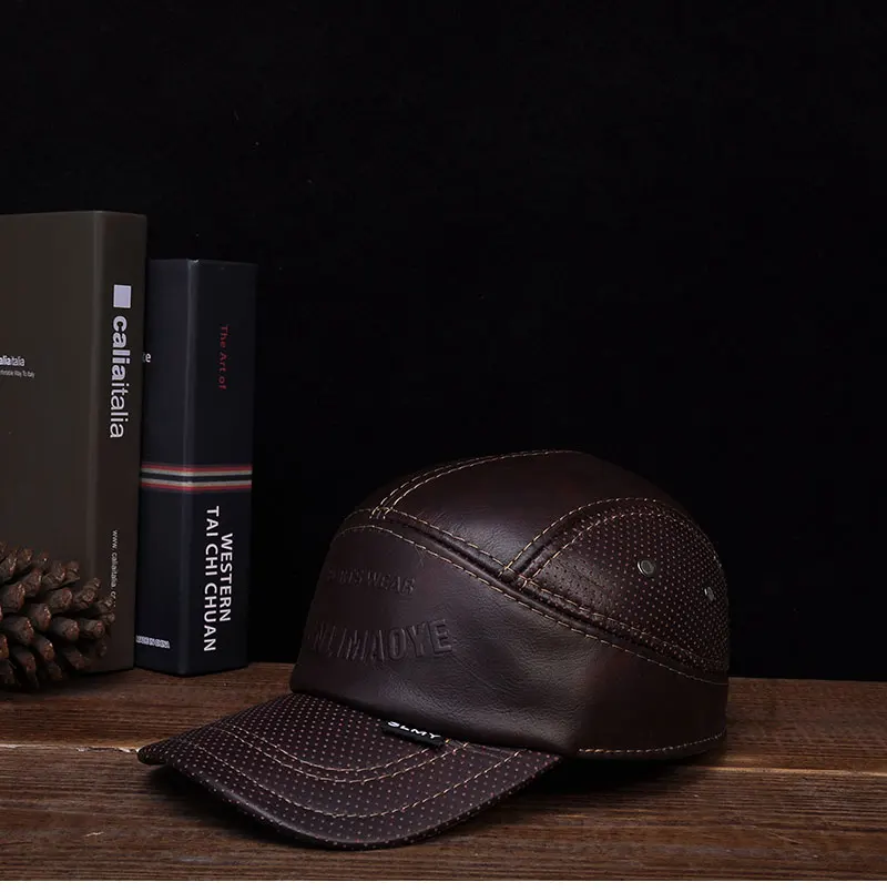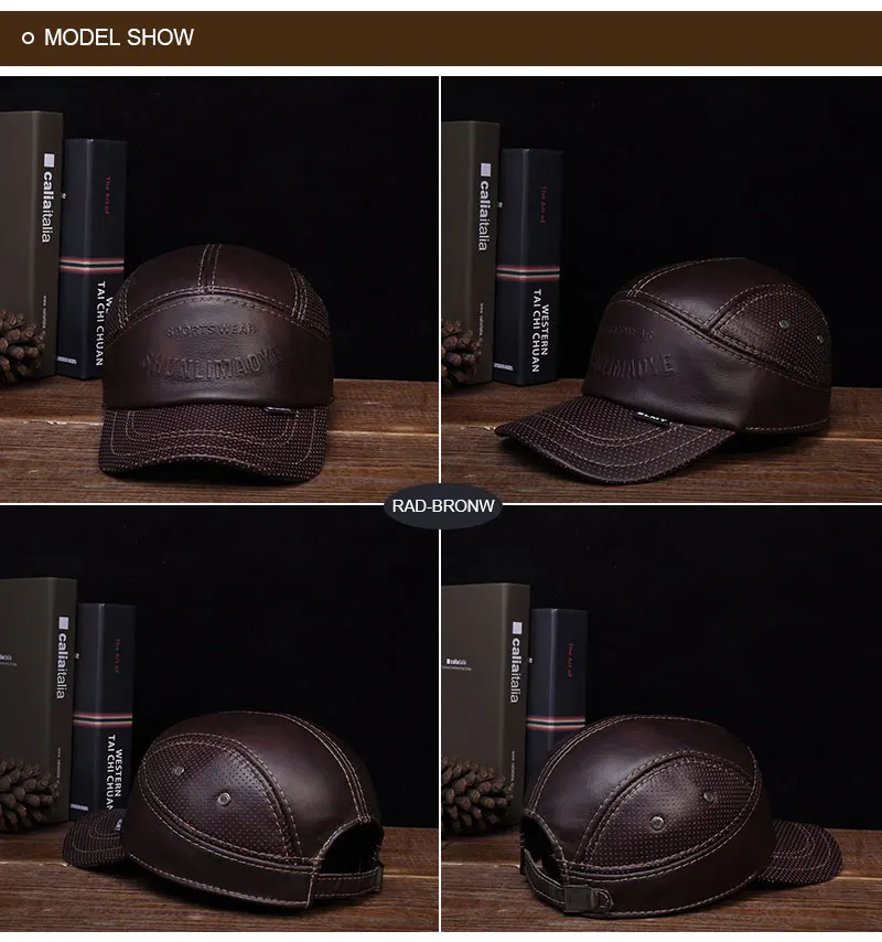 HL033 Mens Leather Baseball Ball Cap Hat Biker Trucker Sports