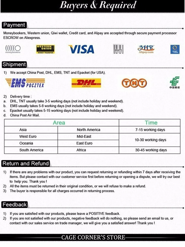 • If you did not receive the product within the guaranteed time( 45 days not including 2-5 day processing) you can request a refund or a reshipment.