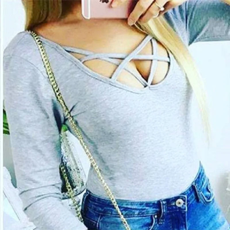 Hollow Out Cotton Bodysuit Women Sexy Long Sleeve Skinny Rompers Womens Jumpsuit Casual Women Bodysuit