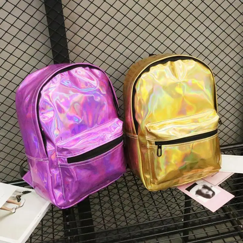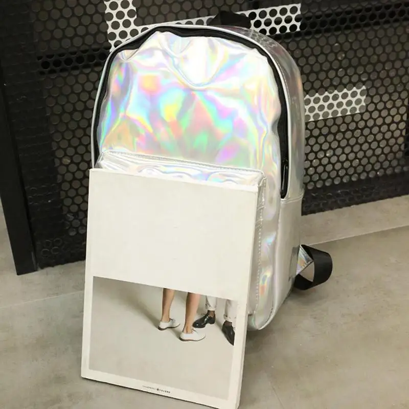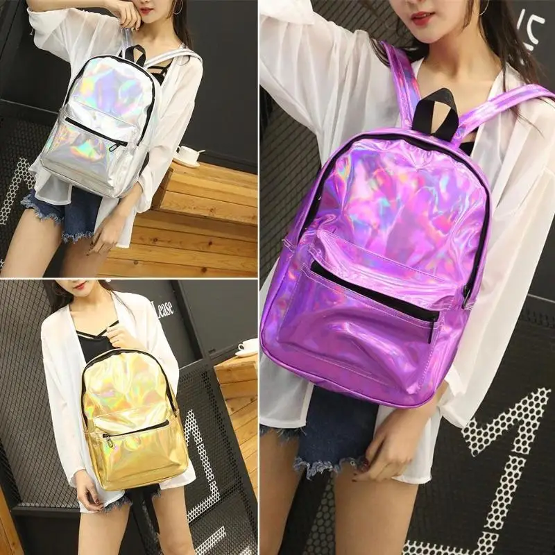 Holographic Backpack Women Large Capacity College Style Casual Girls Shiny Shoulder Bags School Bags