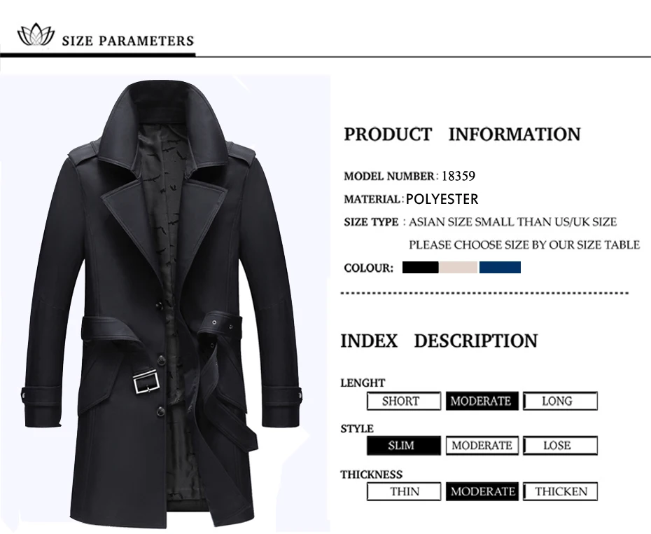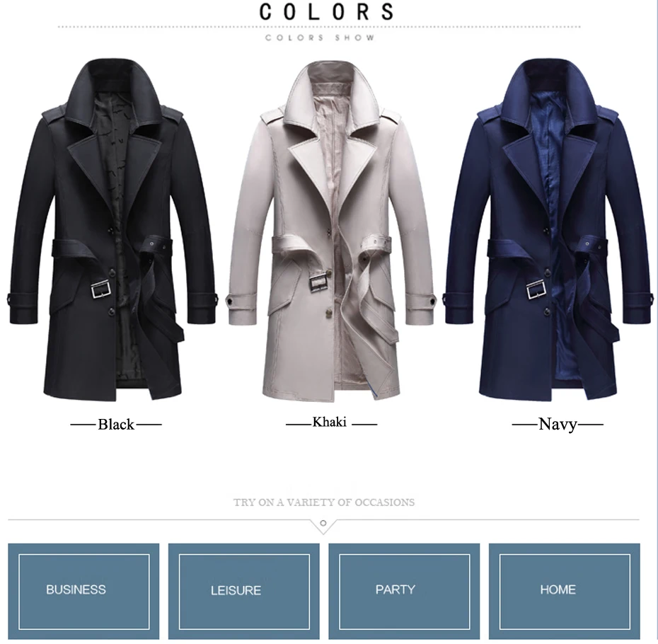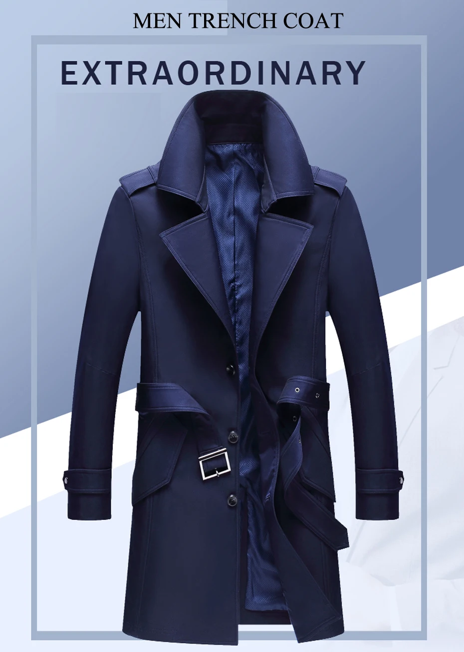 Holyrising men trench coat excellent quality elegant solid jacket male overall Men British Style Business Outwear 18359-5