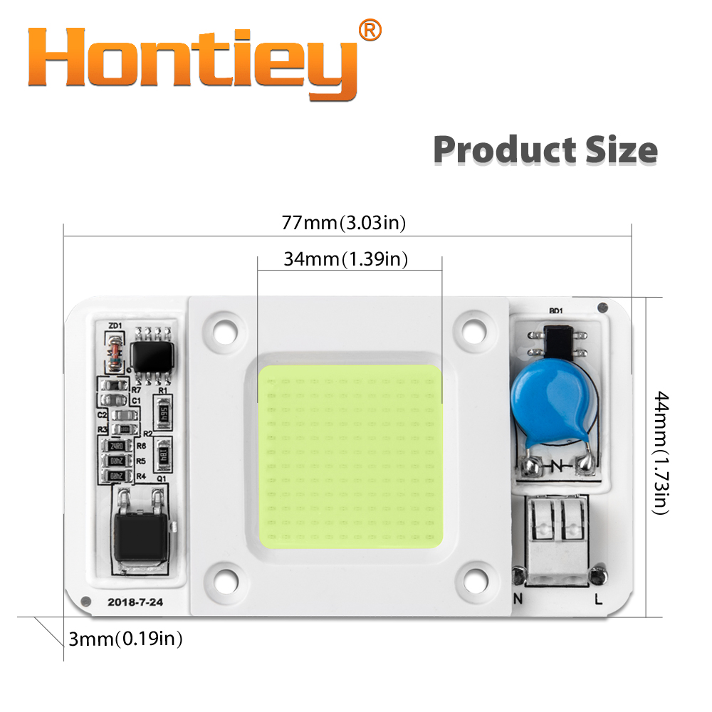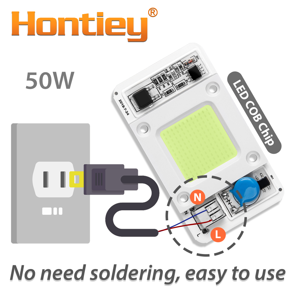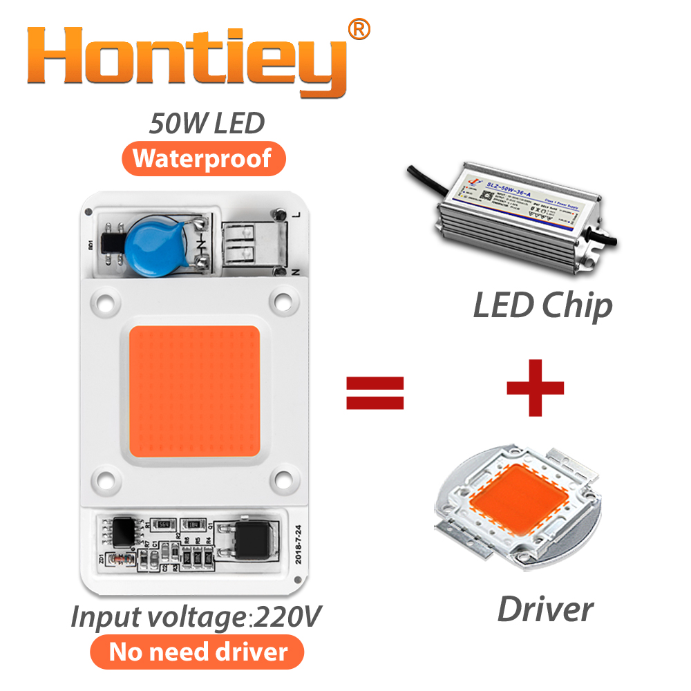 Hontiey LED 50W COB Bulb Smart IC AC 110V 220V Driver White Warm Cool Full Spectrum Spotlight Floodlight Flip chip lamp tube DIY