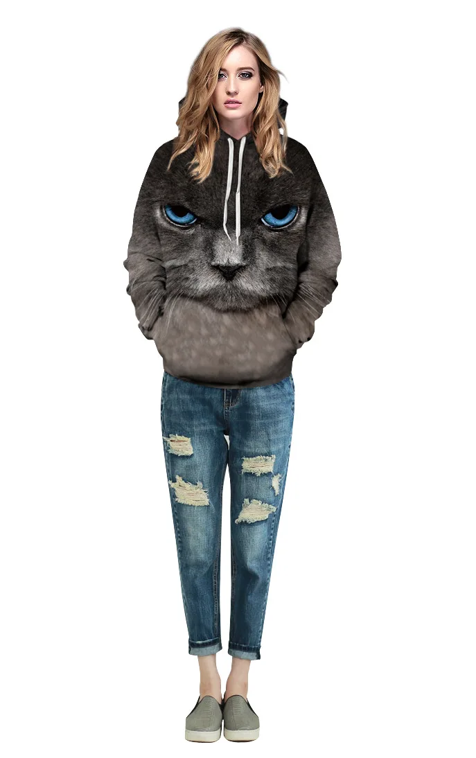 Hoodies Hoodie Women/Men Unisex Long Sleeve Outerwear Black cat professional digital printing Sports Pullovers