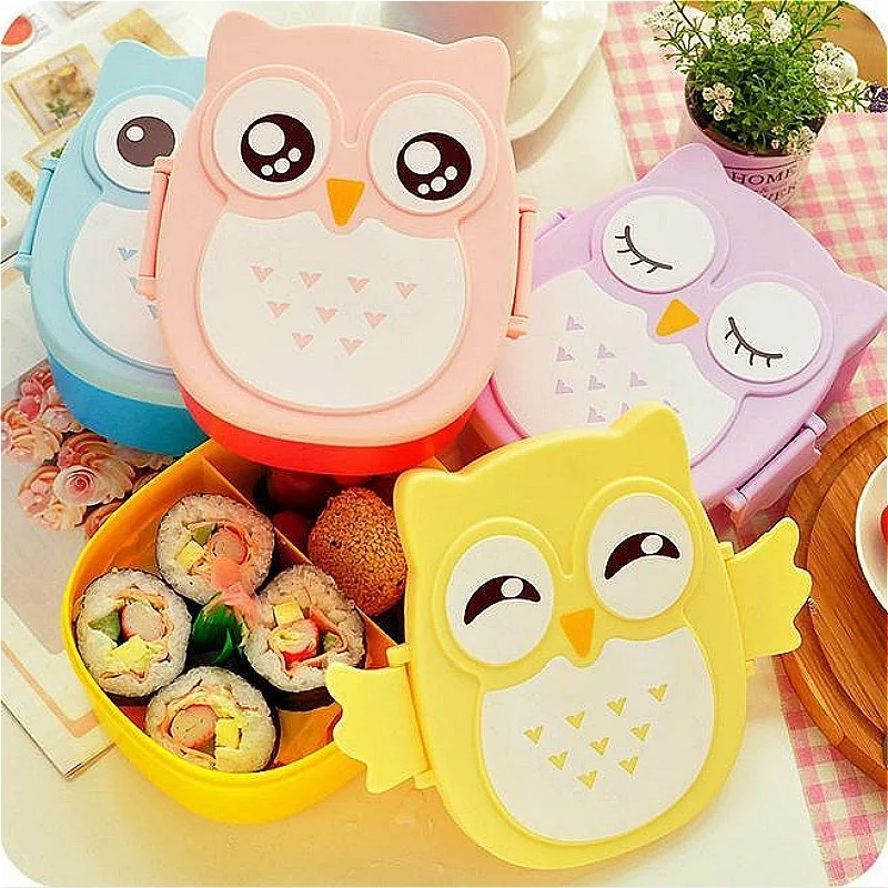 Item Name:2 grid owl pattern lunch box