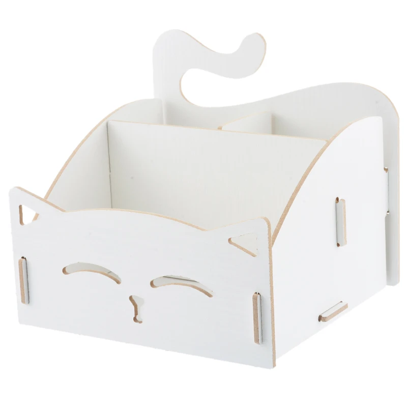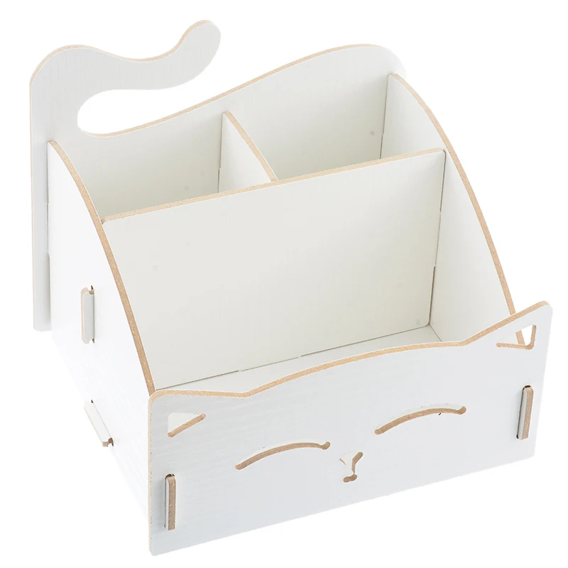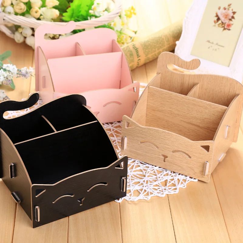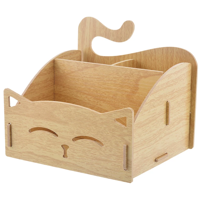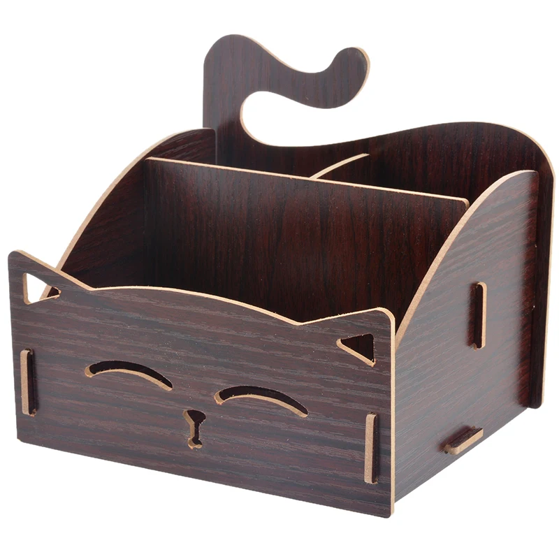 Hoomall Multifunction Desktop Jewelry Storage Box Sundries Makeup Organizer for Comestic Cute Cat Shape Wooden Storage Box