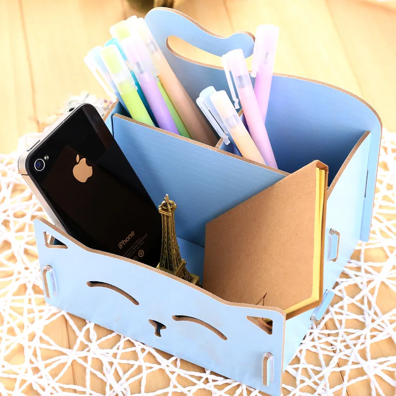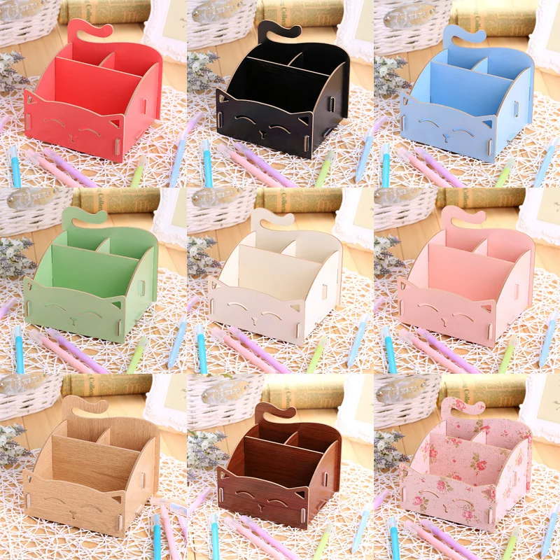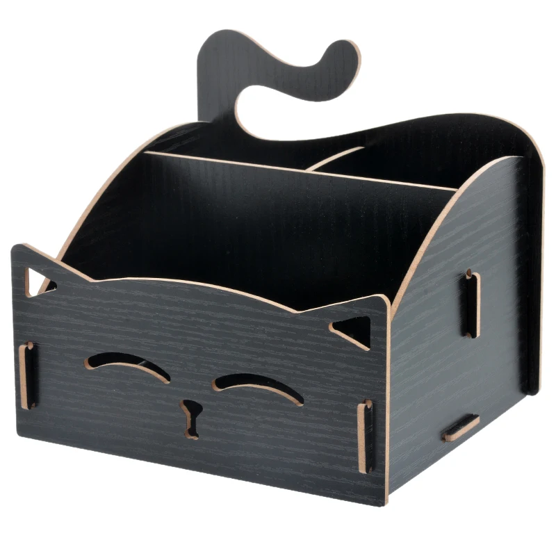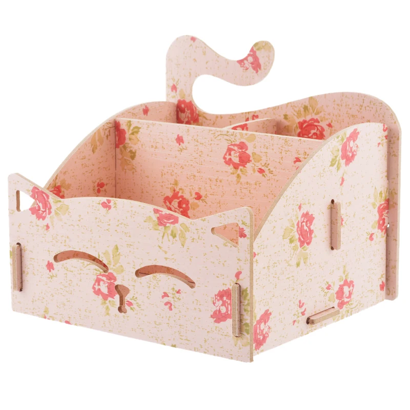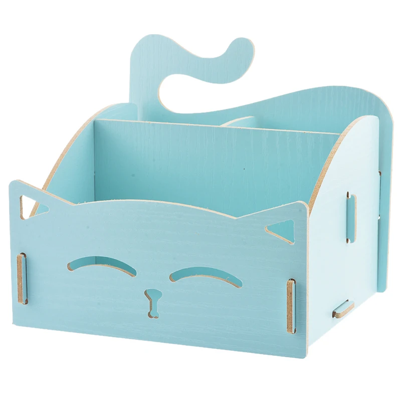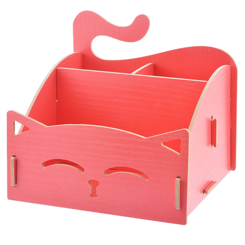 Hoomall Multifunction Desktop Jewelry Storage Box Sundries Makeup Organizer for Comestic Cute Cat Shape Wooden Storage Box
